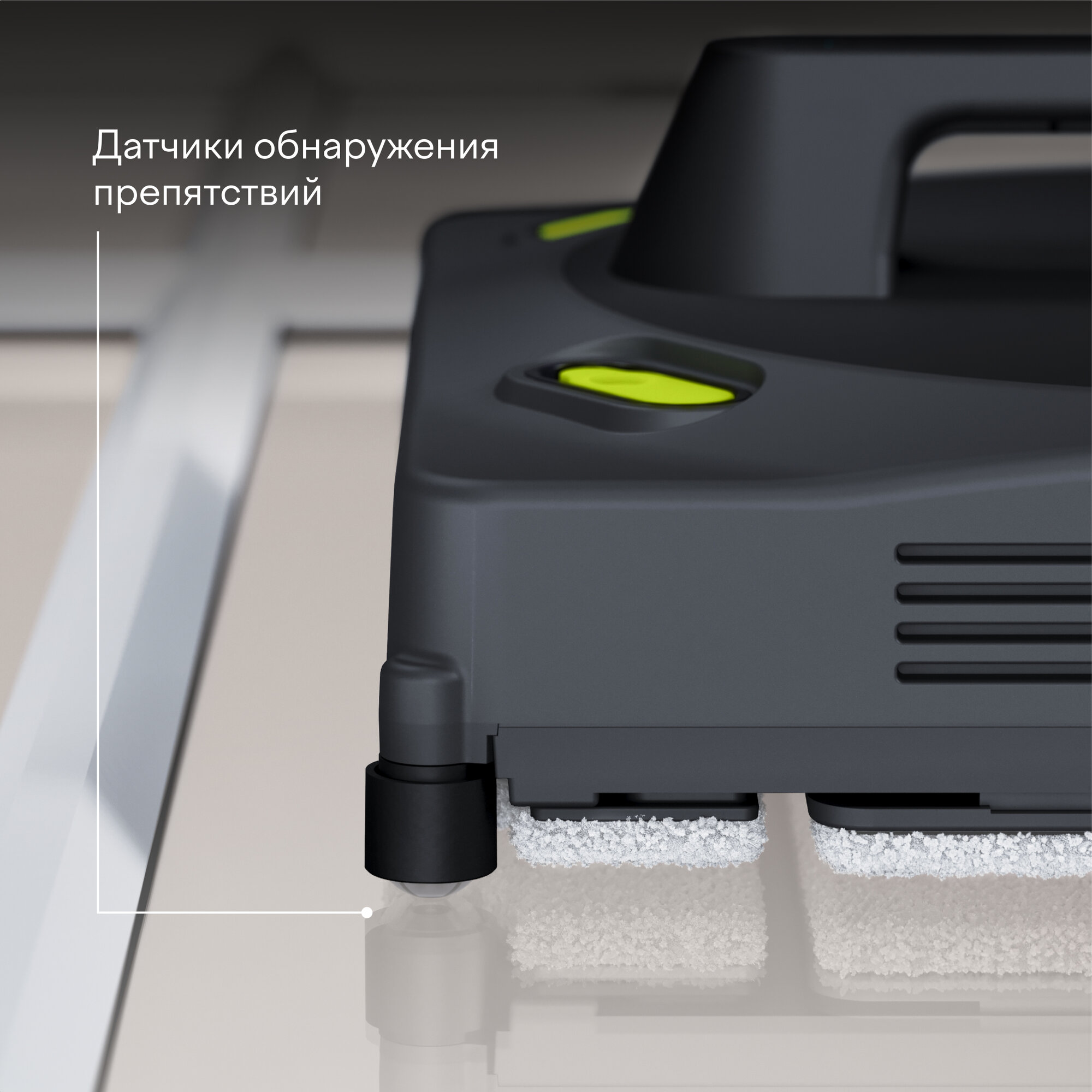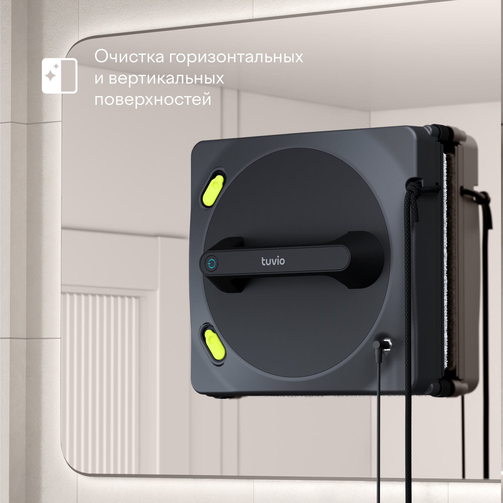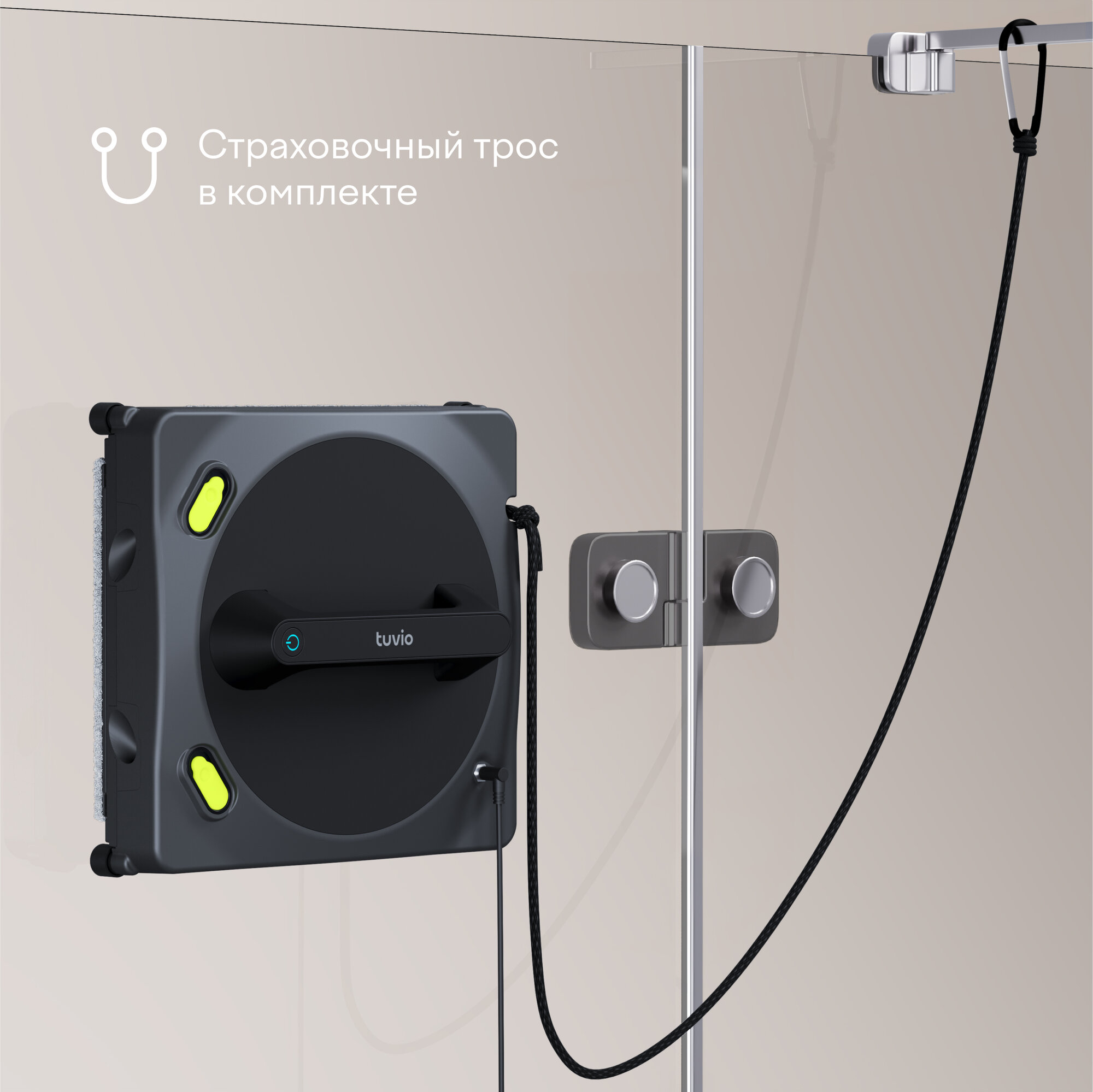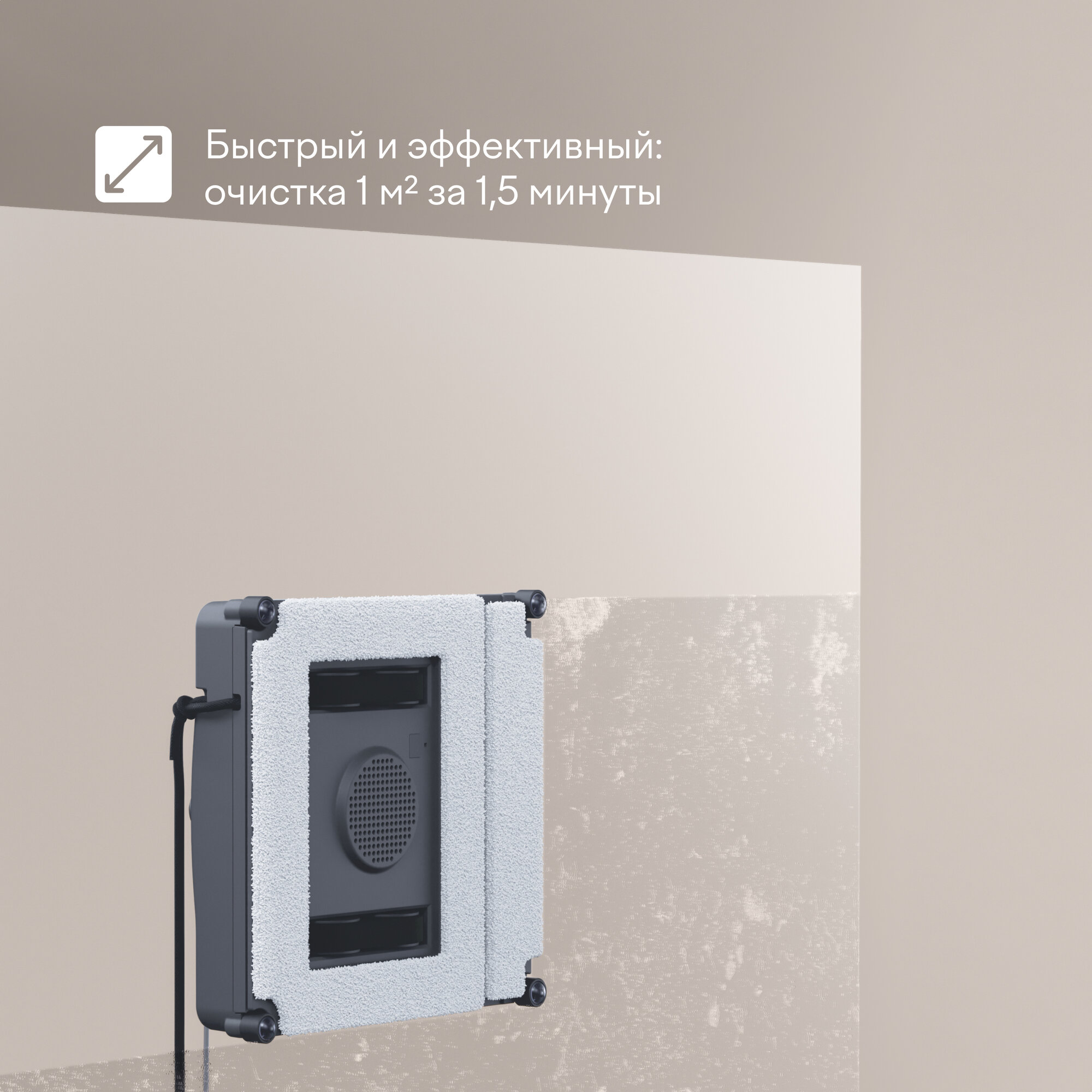 При мощности всасывания 50 Вт устройство удерживается на вертикальных поверхностях даже при работе с мокрыми стёклами. Двойная страховка включает: