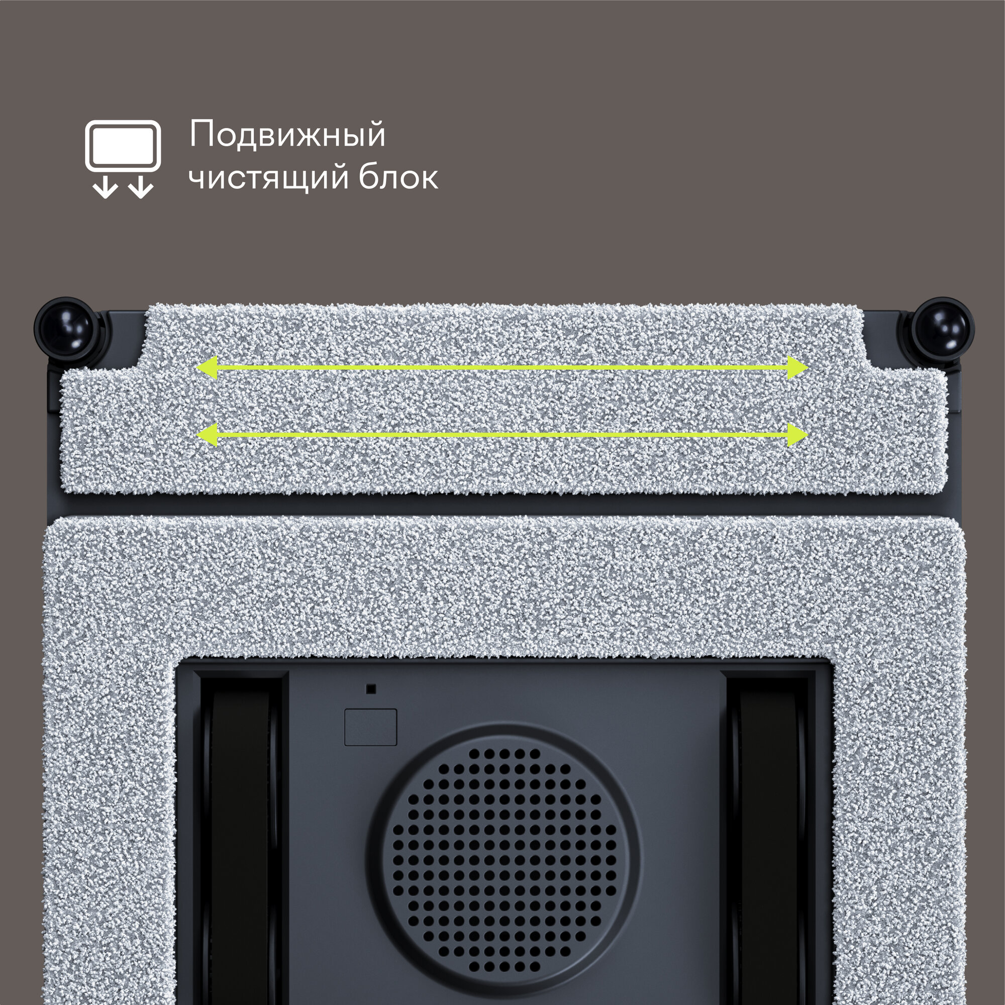 Подвижный моющий блок Tuvio TVR02W решает главную проблему роботов-мойщиков - плохое удаление пятен по краям стекла. В отличие от статичных моделей Xiaomi Mi, его очищающие насадки перемещаются на 15 мм влево-вправо, обрабатывая: