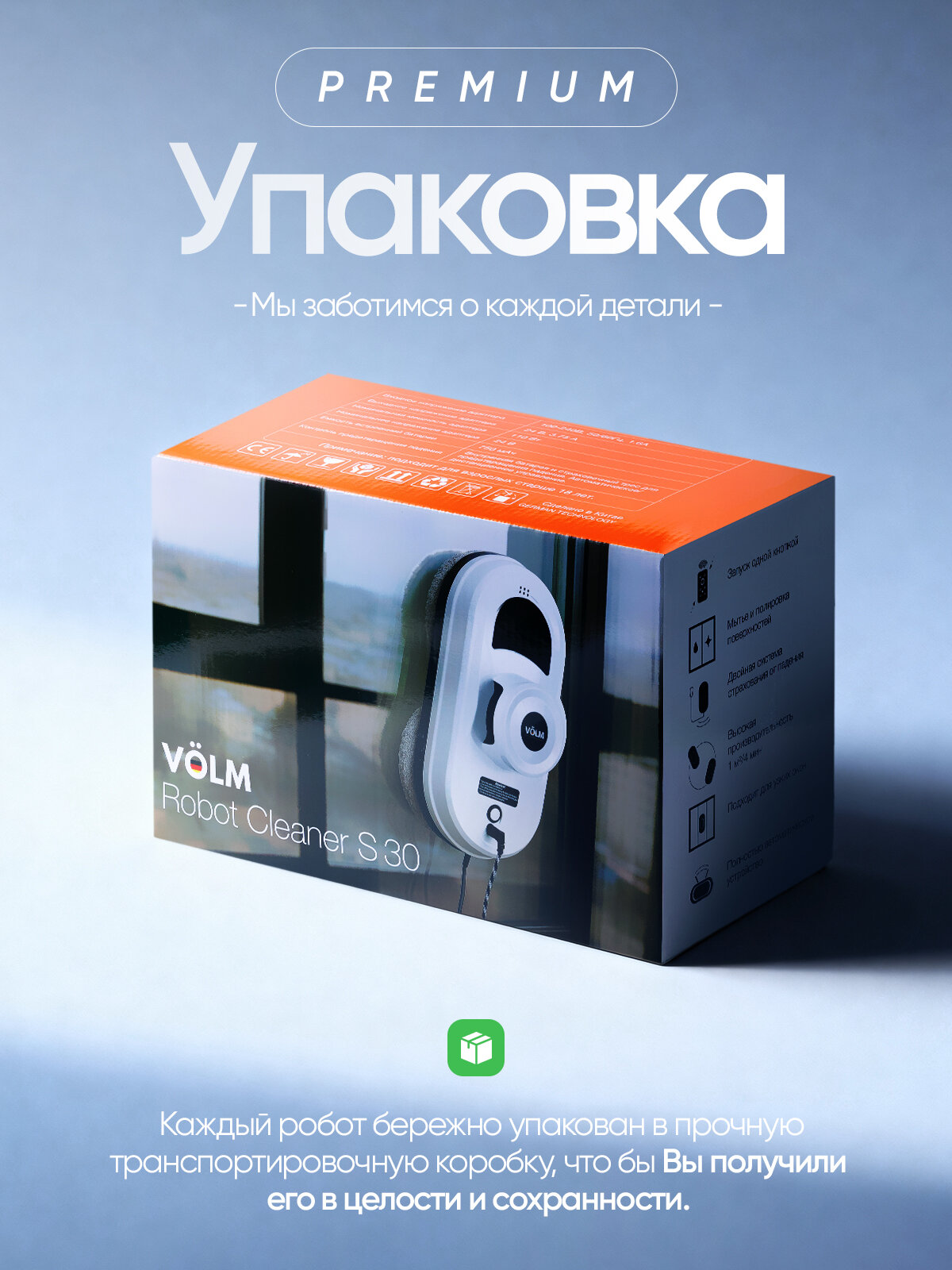 Аккумуляторный робот White Clean Pro использует вакуумное сцепление для передвижения по вертикальным поверхностям. Два высокоточных моторов создают 2600 Па всасывания — этого хватает для удержания на зеркальных фасадах высотных зданий. Встроенный микропроцессор анализирует поверхность 20 раз/сек через инфракрасные сенсоры, что предотвращает: