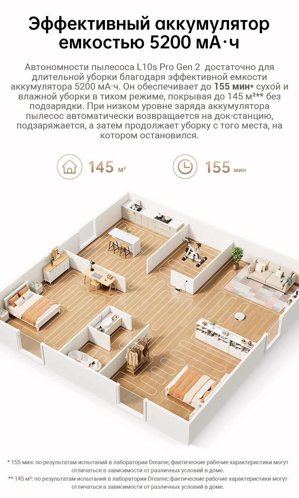 - Кастомизация зон уборки с точностью до 10 см²