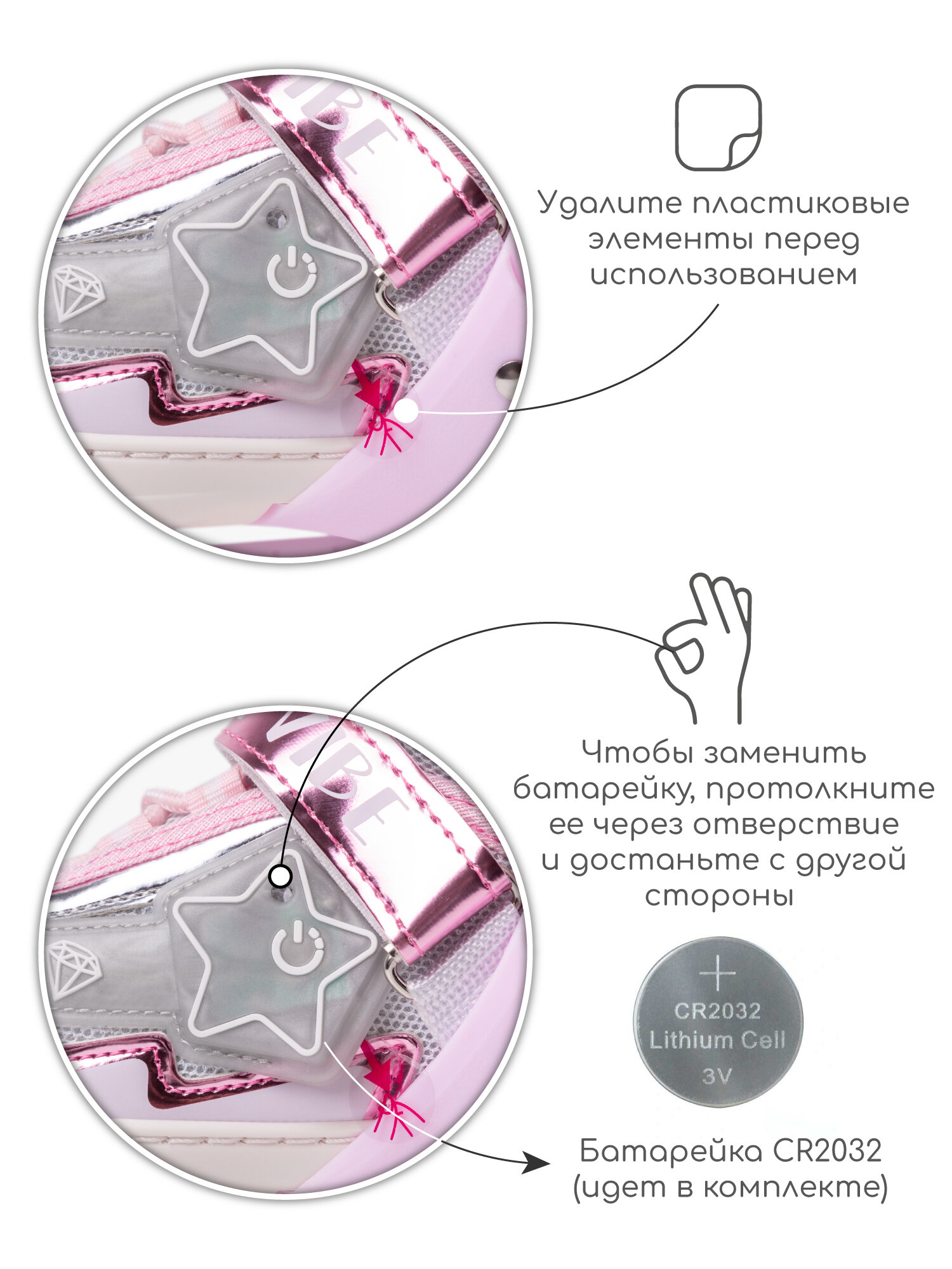 - Внутренний ботинок: дышащий материал EVA с анатомической стелькой, одобренной ассоциацией детских ортопедов