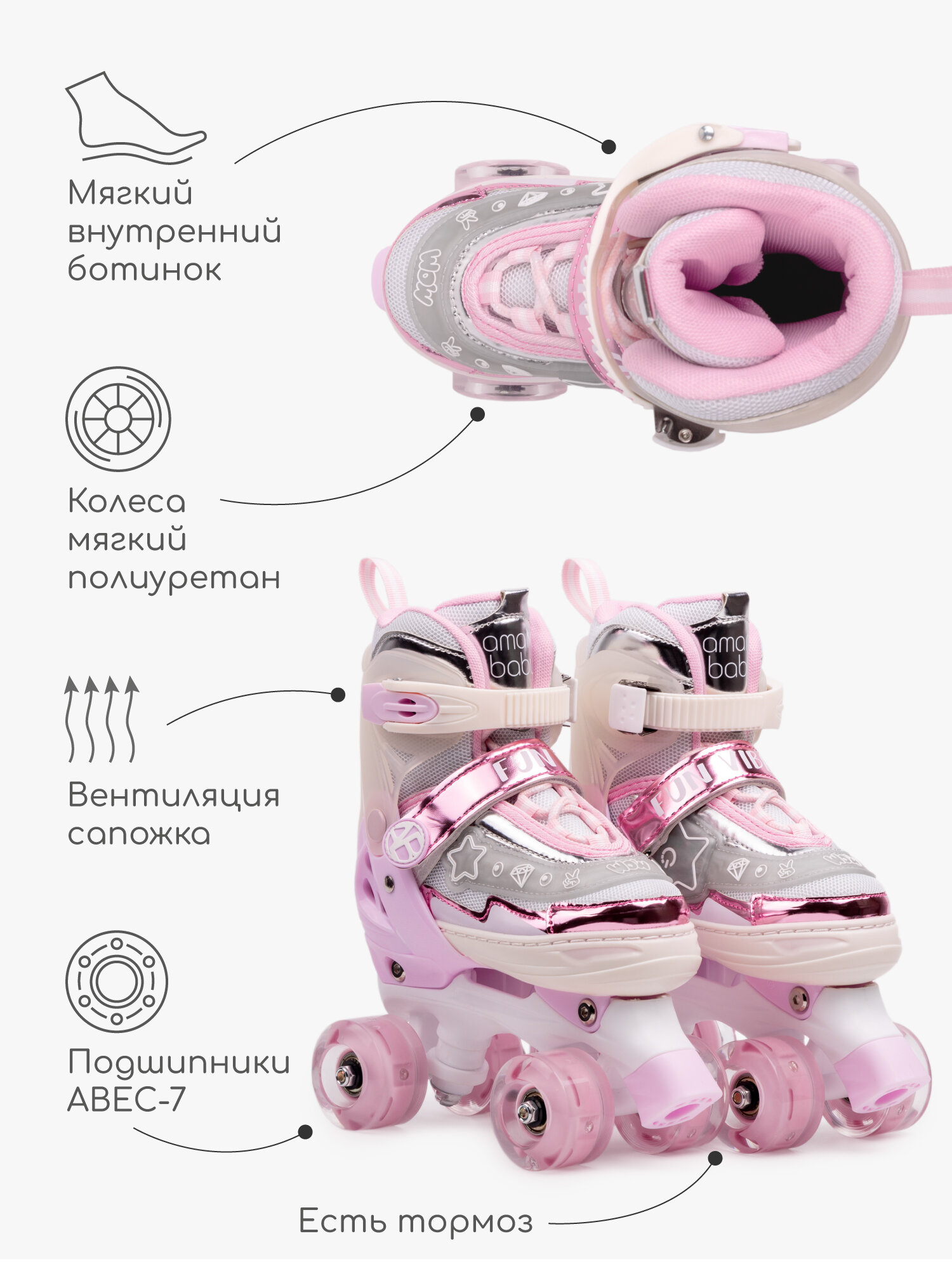 Ролики Amarobaby Glory — раздвижная модель с подсветкой для девочек 6-12 лет