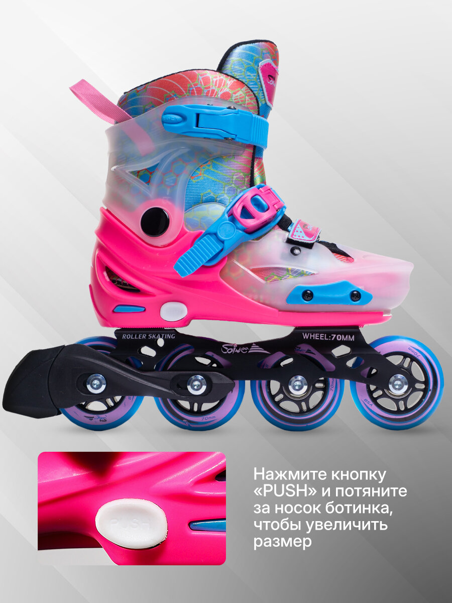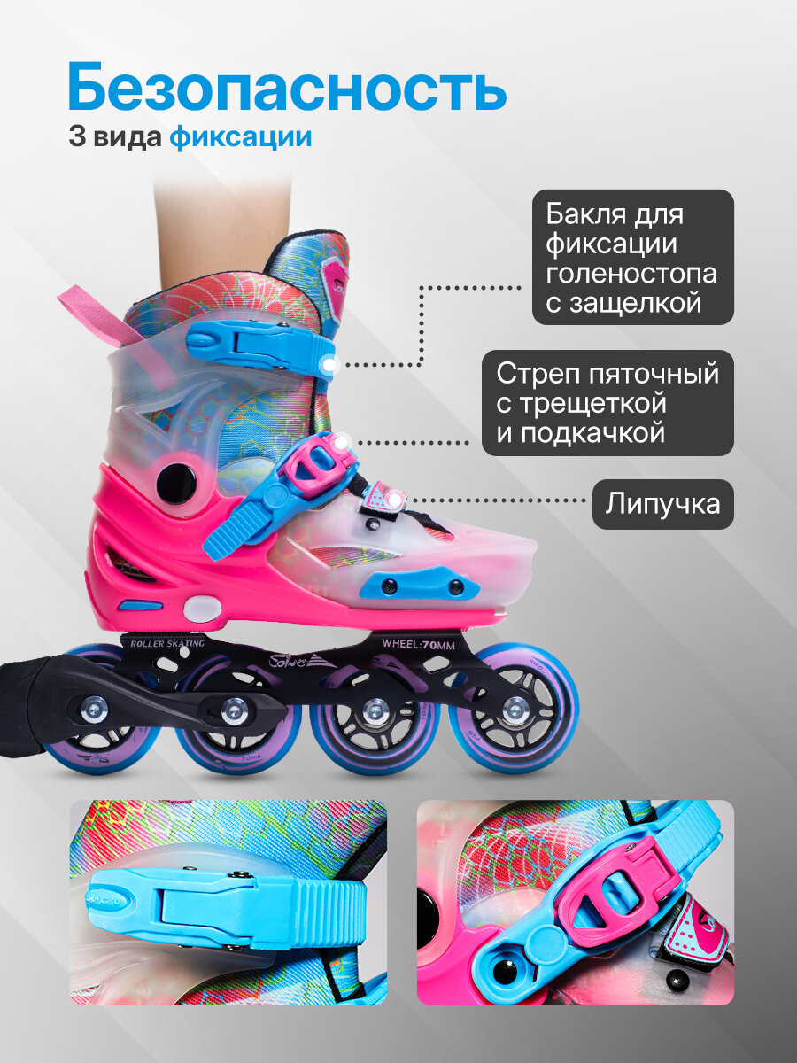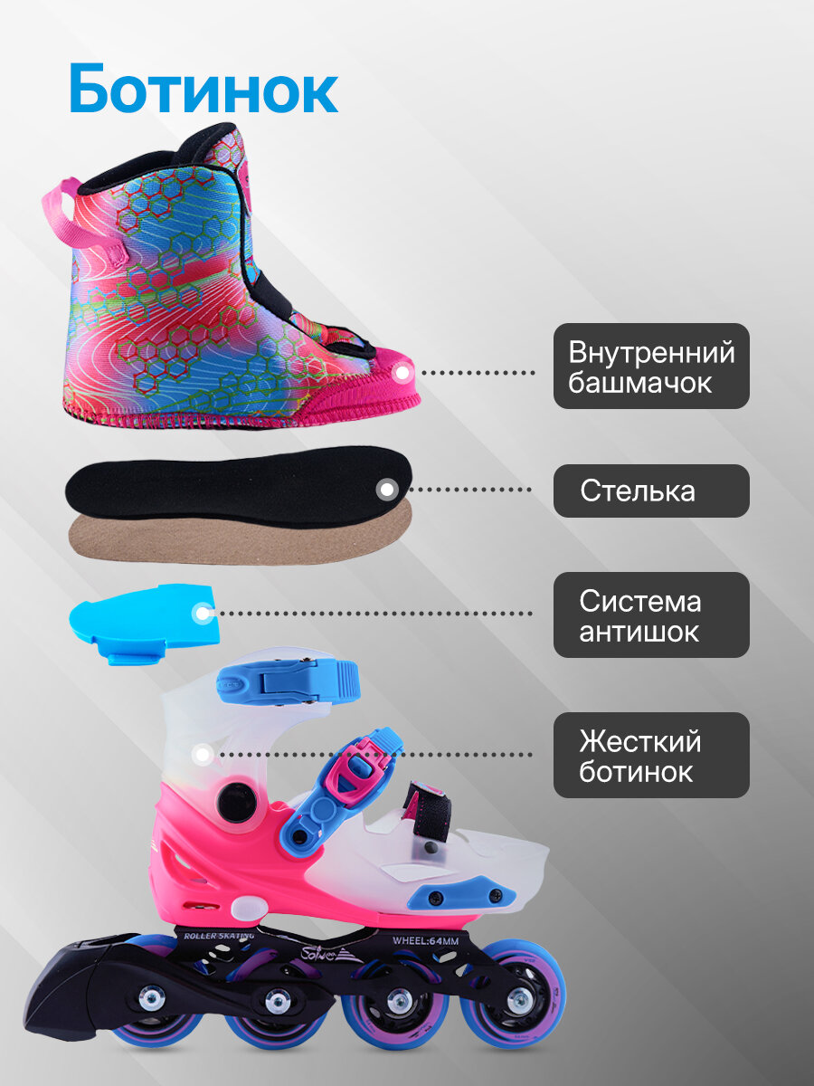 Раздвижная система SIZE+ увеличивает длину ботинка от 34 до 37 размера благодаря запатентованному механизму. Металлические направляющие выдерживают до 500 циклов регулировки без люфтов — тестировано в лаборатории материалов НИИ Спортинвентаря. Для фиксации положения достаточно передвинуть защелку на боковой части рамы.