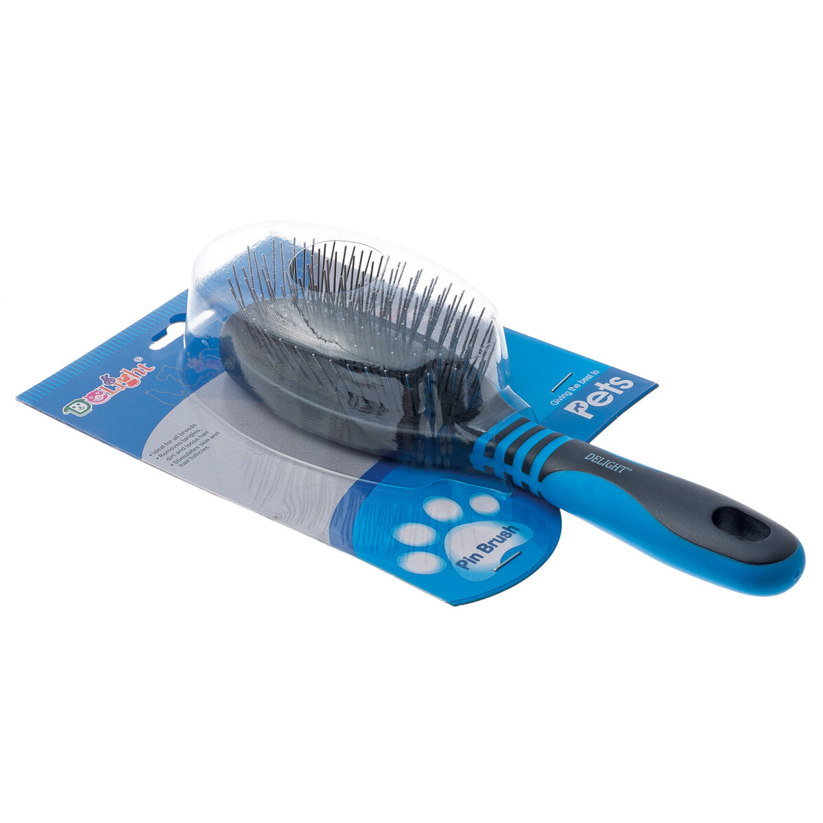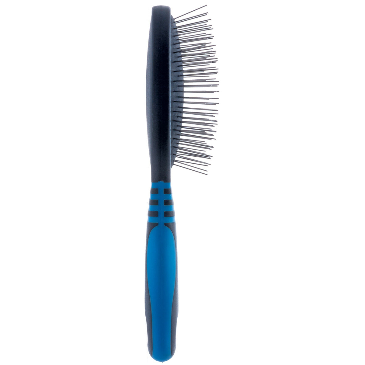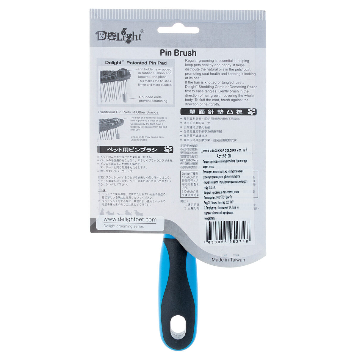 Металлическая щетка DeLIGHT Professional оснащена 127 вращающимися иглами из нержавеющей хирургической стали 420 серии. Коническая форма зубьев (диаметр основания 1 мм, верхушки - 0,3 мм) обеспечивает деликатное проникновение сквозь густую шерсть любых типов: