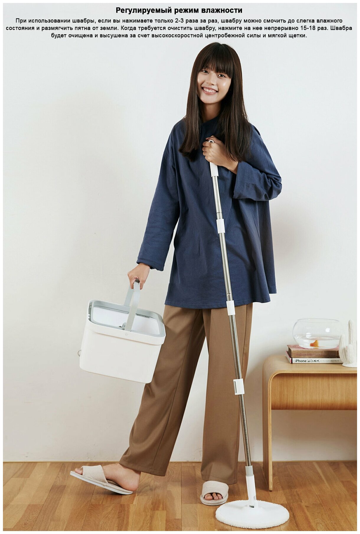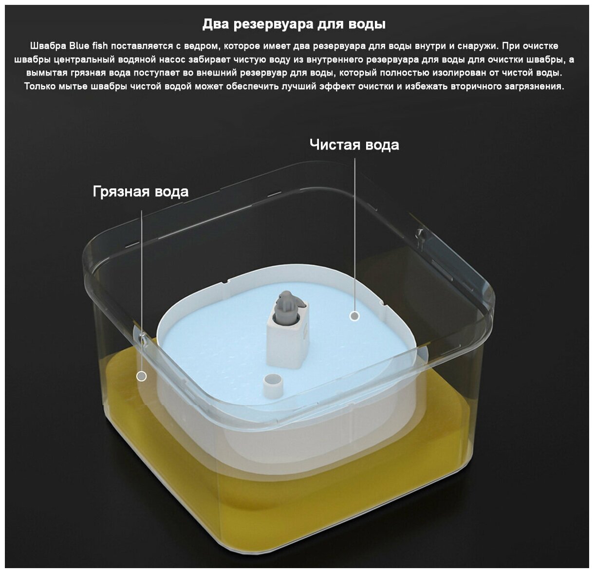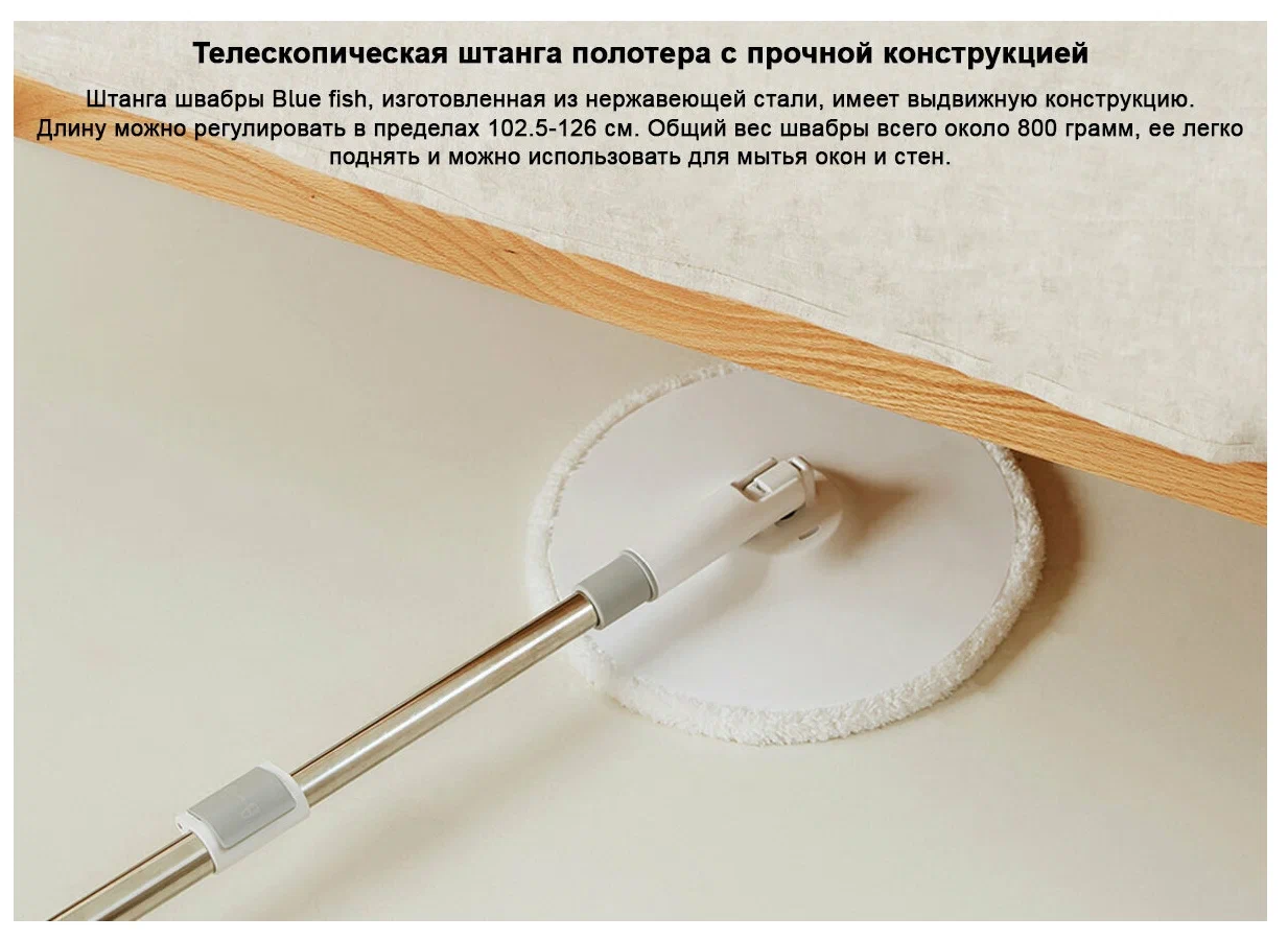 Швабра Xiaomi Blue Fish Mop White прошла 1500 циклов отжима в испытательной лаборатории Guangzhou – вращающийся механизм сохранил плавность хода благодаря трём слоям защиты: