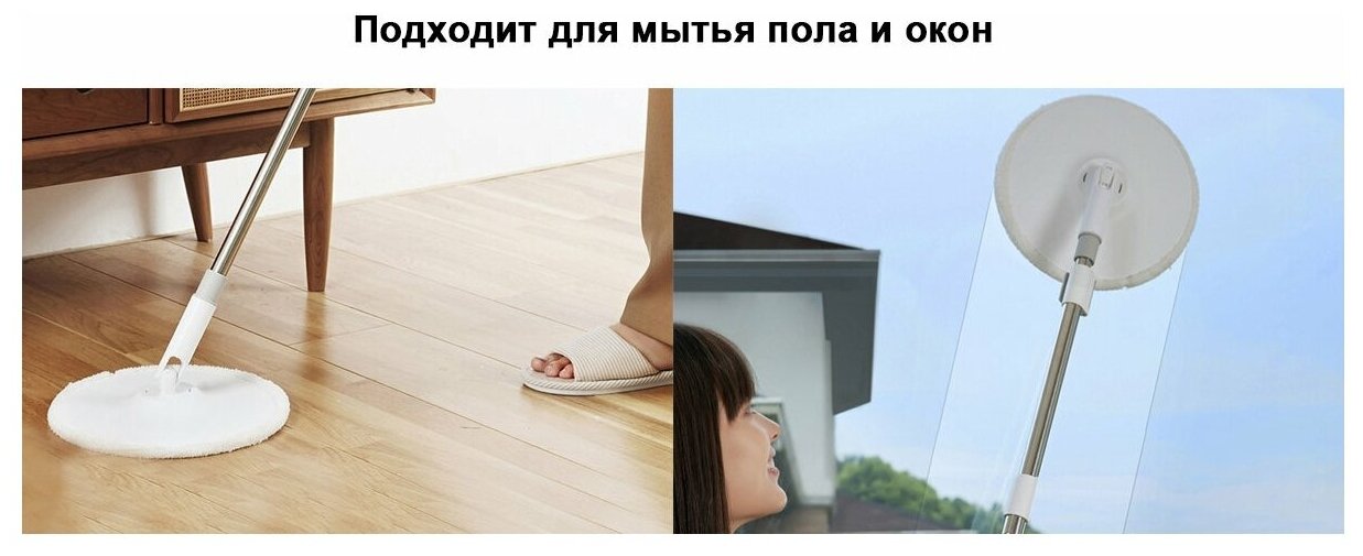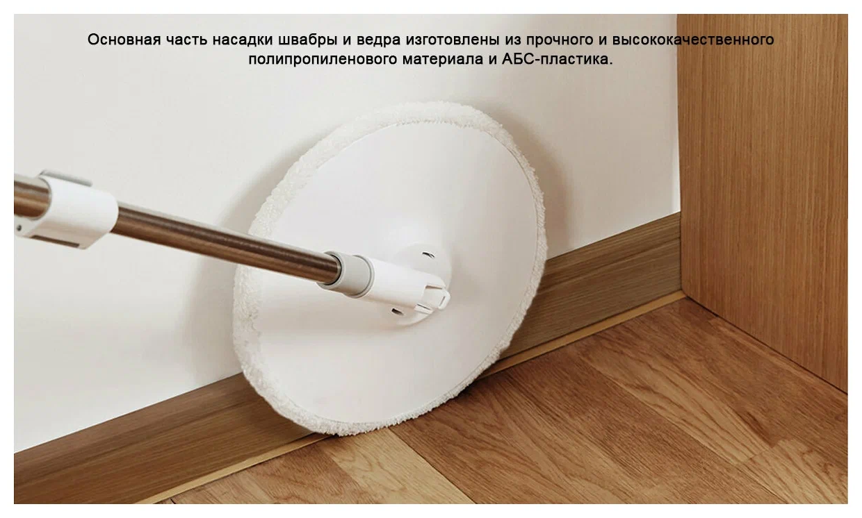 - Вращающийся механизм отжима – очищает насадку на 90% эффективнее ручного выкручивания по тестам китайского НИИ CHIC