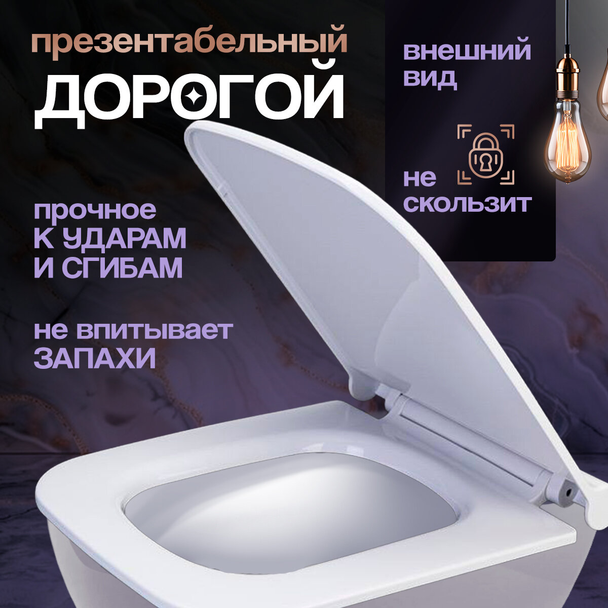 Пластиковый корпус повышенной прочности из инженерного полимера выдерживает нагрузку до 150 кг. Технология двойного литья предотвращает появление трещин при перепадах температур от -20°C до +70°C. Габариты модели 440×380 мм подходят для 87% унитазов российского рынка.