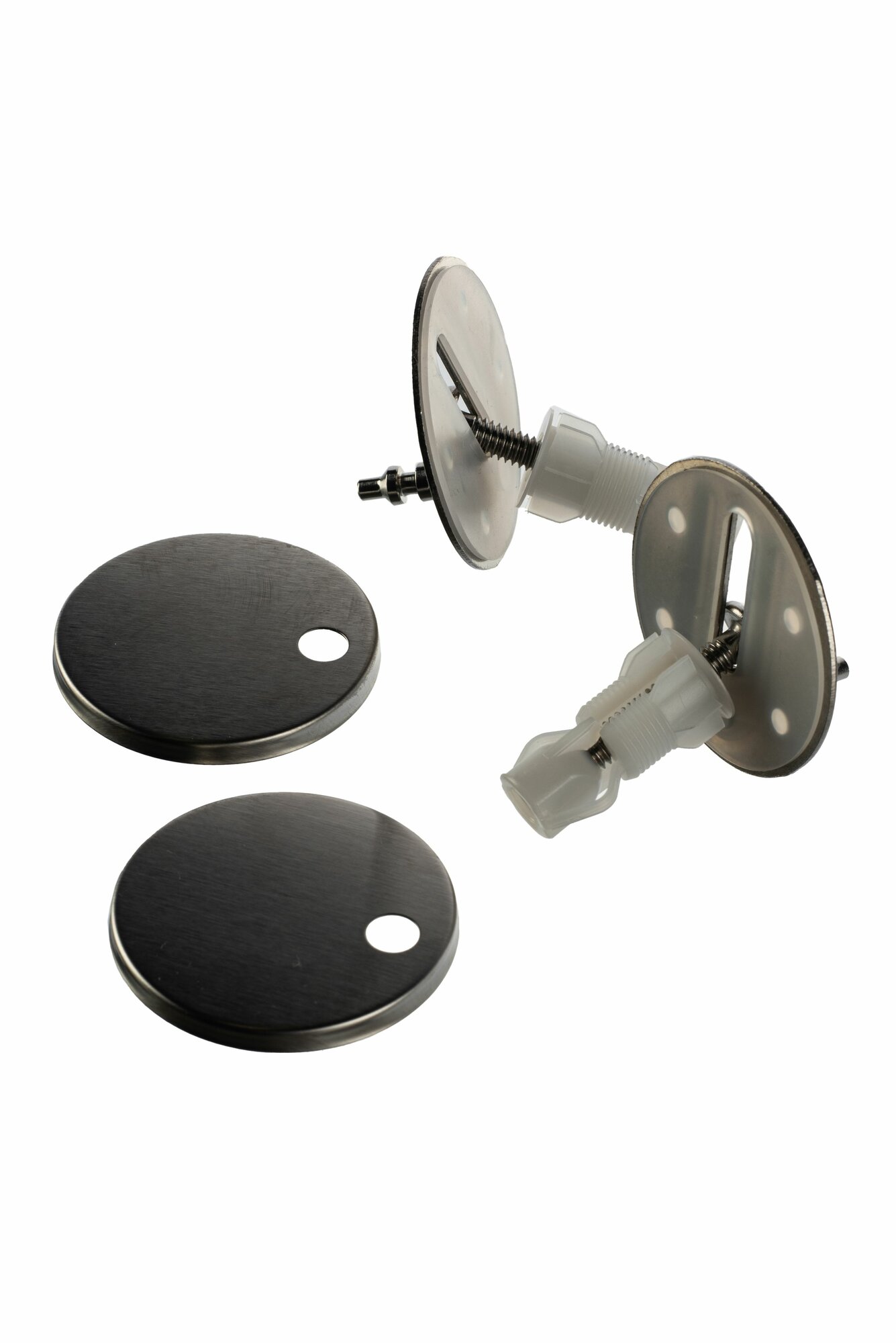 - Закрепите монтажную пластину на унитаз болтами с резиновыми прокладками