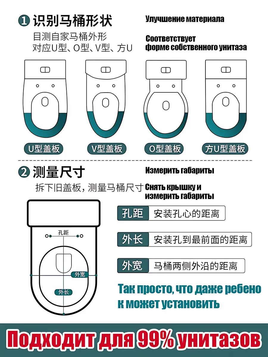 - Габариты 40×35 см — подходят для 95% моделей отечественных и импортных унитазов