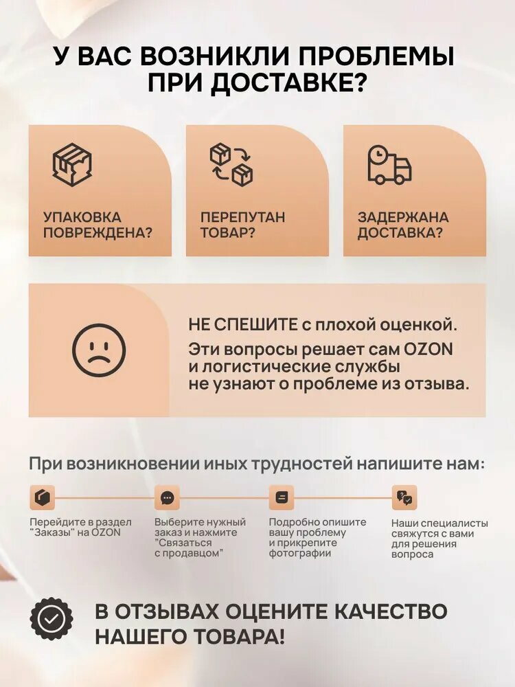 - Доставка с Ozon/Wildberries: 1-3 дня в Москве, до 7 дней – регионы