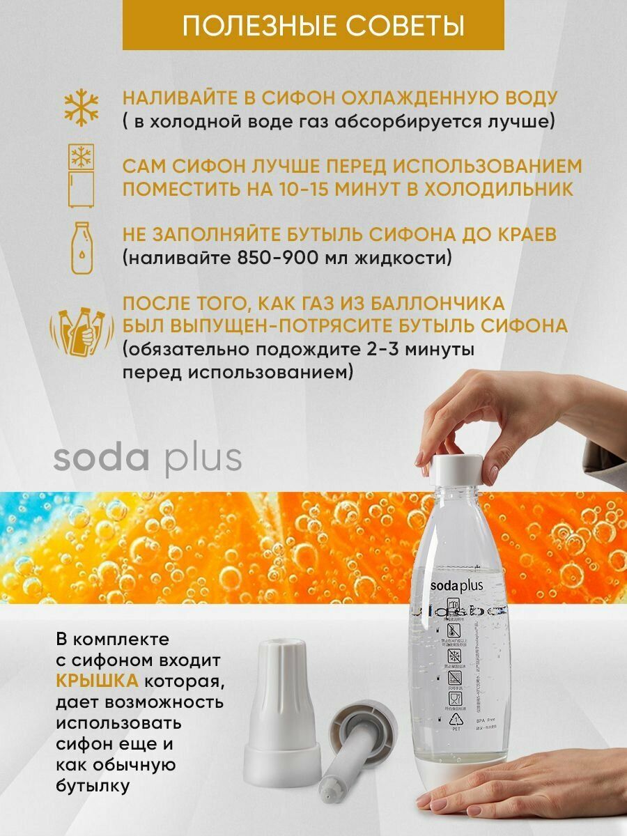 - Стандартные 425-граммовые баллоны SodaStream (до 60 литров газировки)