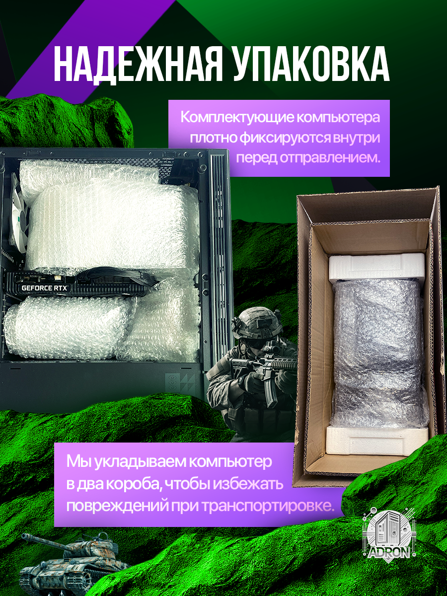 Стандартная отправка через СДЭК занимает 3-7 дней по РФ. Перед передачей курьеру проводится: - 30-минутный стресс-тест AIDA64 - Проверка битых пикселей (для мониторов в комплекте) - Тест на посторонние шумы