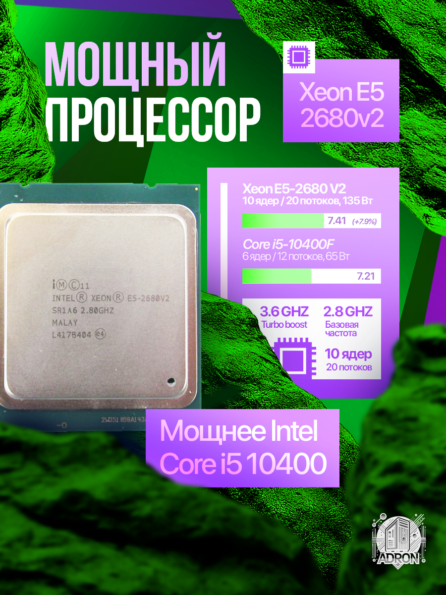 Процессор Intel Core i5-10400F (аналог без интегрированной графики) работает на базовой частоте 2.9 ГГц с турбобустом до 4.3 ГГц. В сравнении с Ryzen 5 3600 уступает в многопоточных задачах (~10%), но выигрывает в играх, использующих 1-4 ядра. Тесты Cinebench R20 показывают 2468 баллов.
