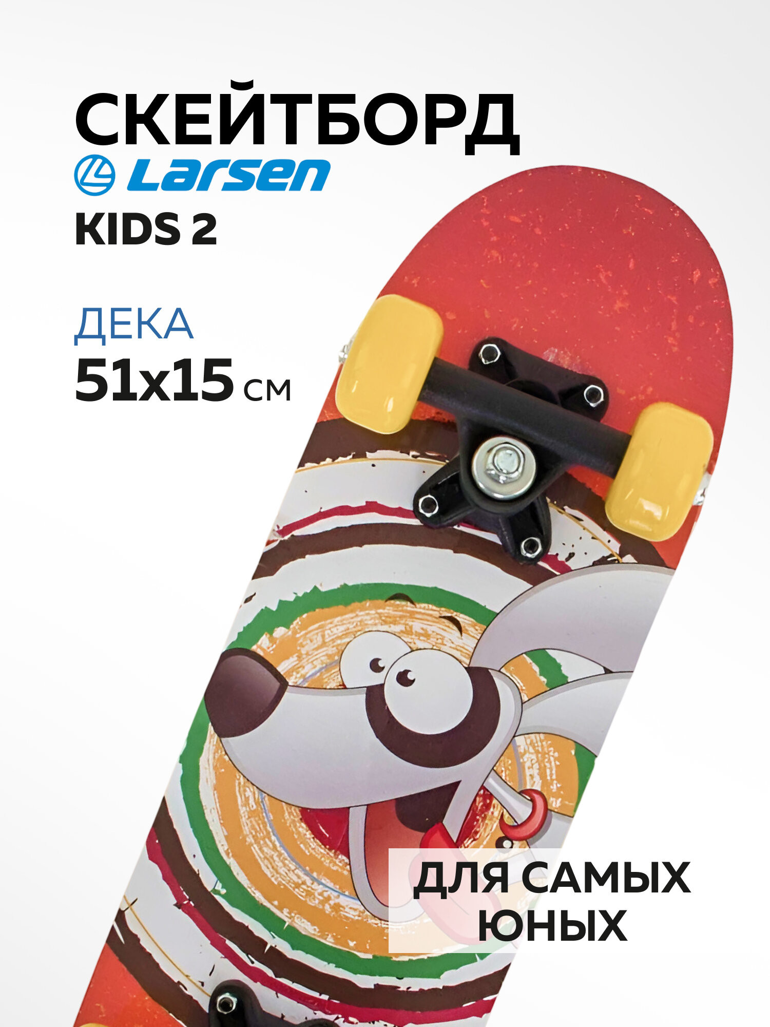Детский скейтборд Larsen Kids 2 создан для начинающих райдеров 5-12 лет. Основные преимущества: