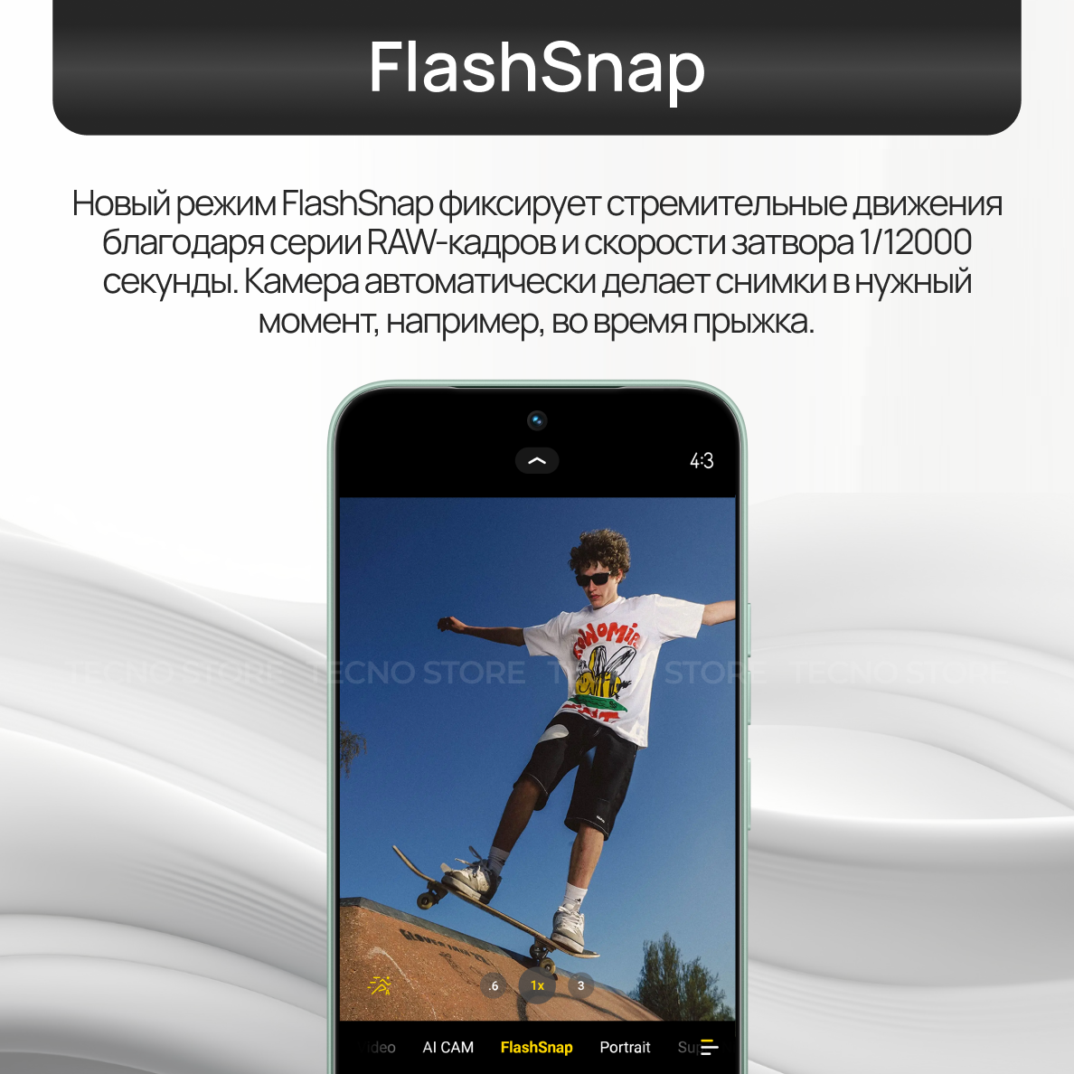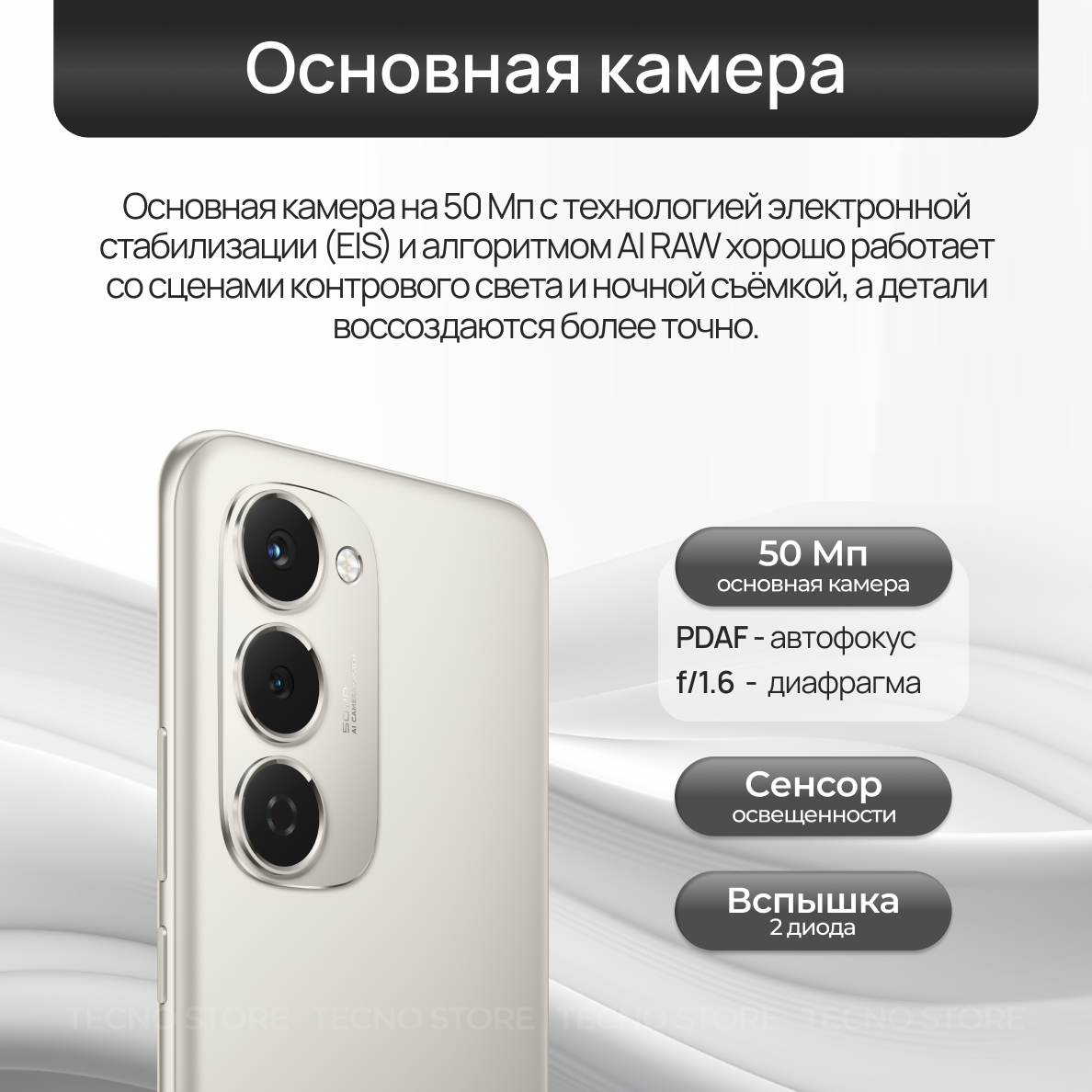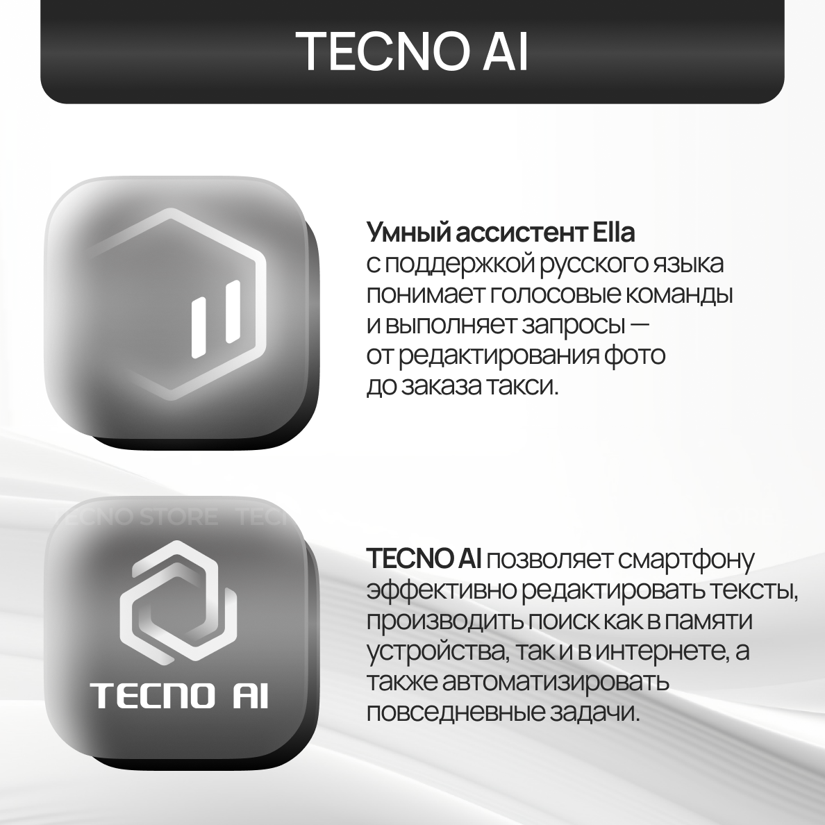Совместимые аксессуары: беспроводные наушники TECNO Buds 2 (работают 5 часов от одного заряда), чехол Book Case с поддержкой Wake Gestures.