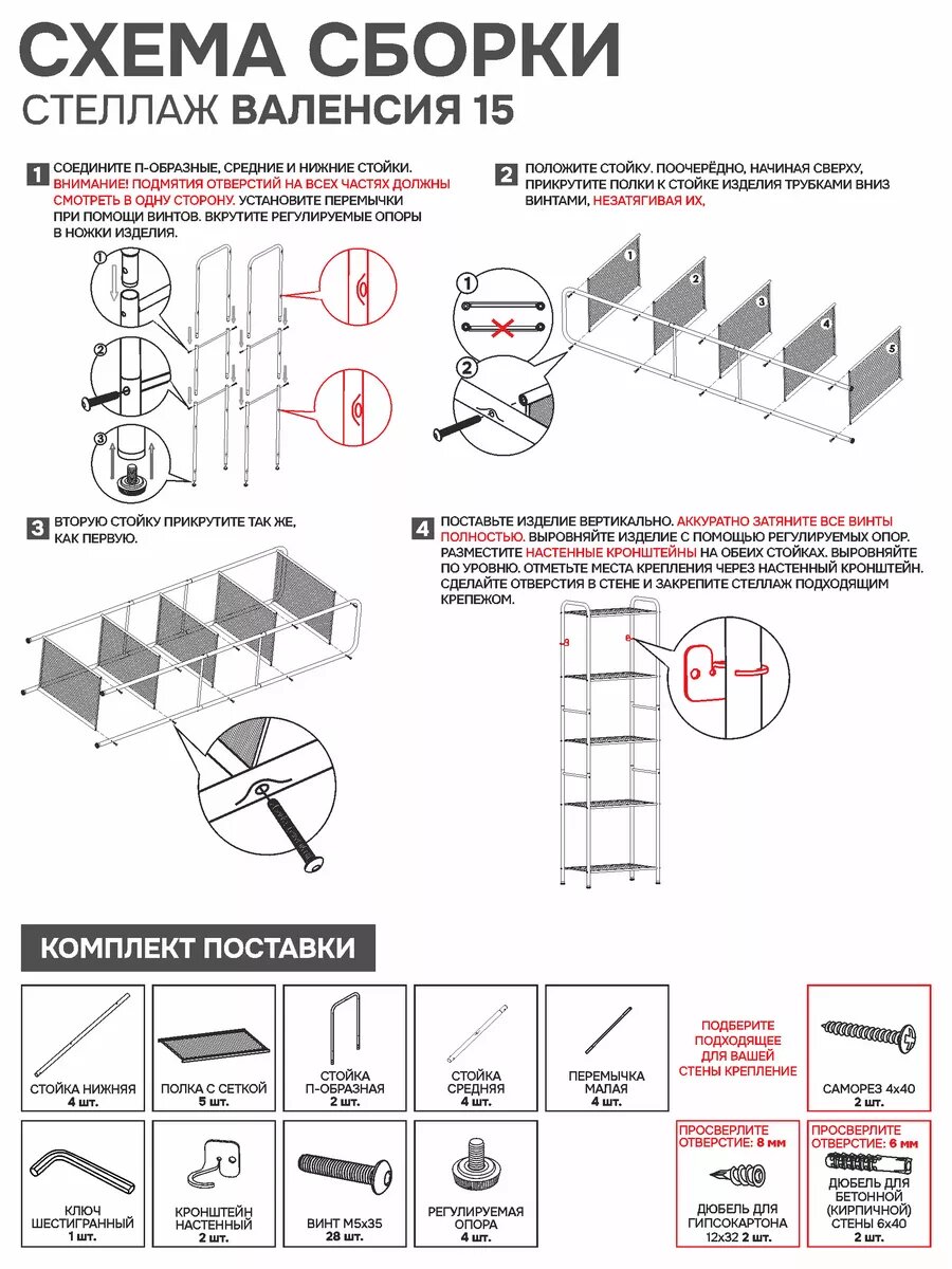 | Грузоподъёмность на секцию | 40 кг | 15 кг | 25 кг |