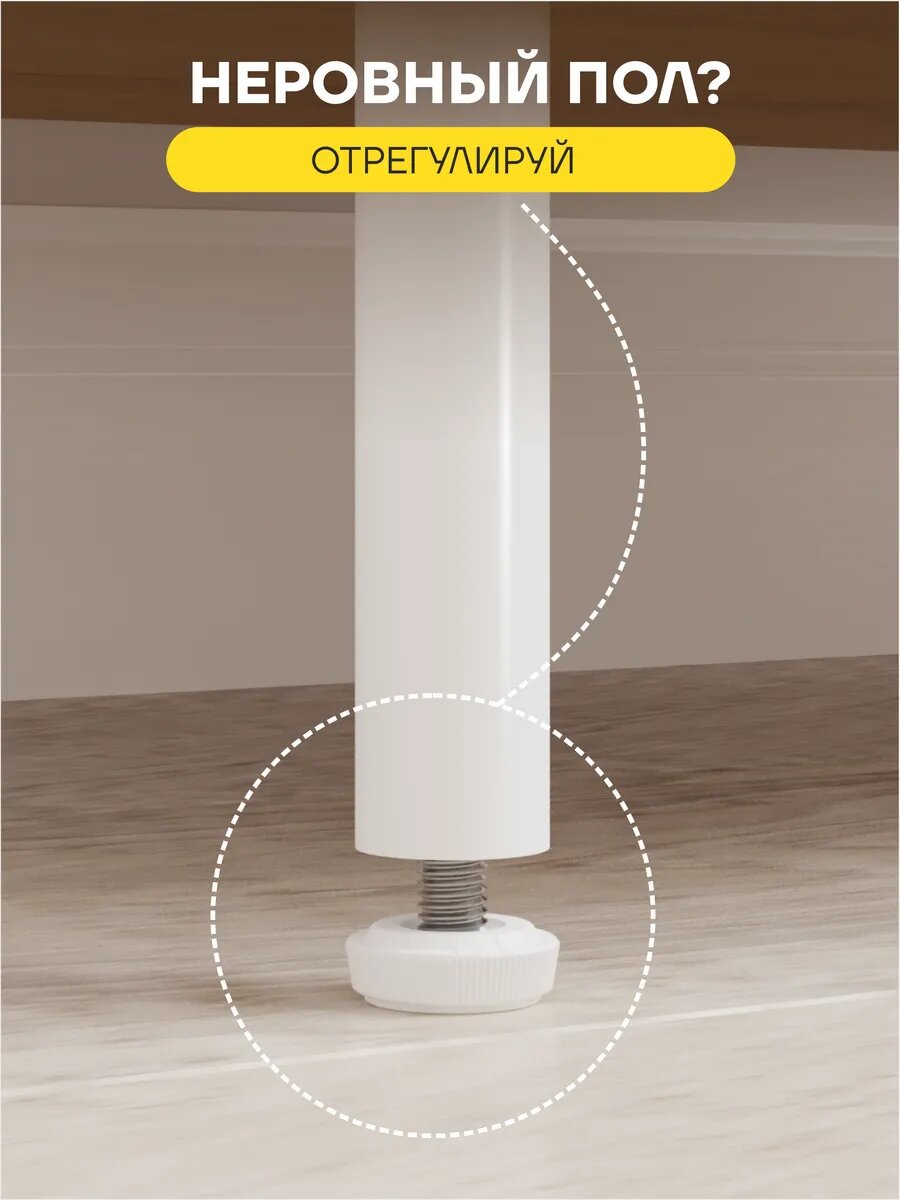 В базовый набор входят 4 полки с креплениями и пластиковые заглушки. Для установки на линолеум или ковролин рекомендуем использовать резиновые прокладки. Выравнивание по уровню осуществляется регуляторами высоты ножек.