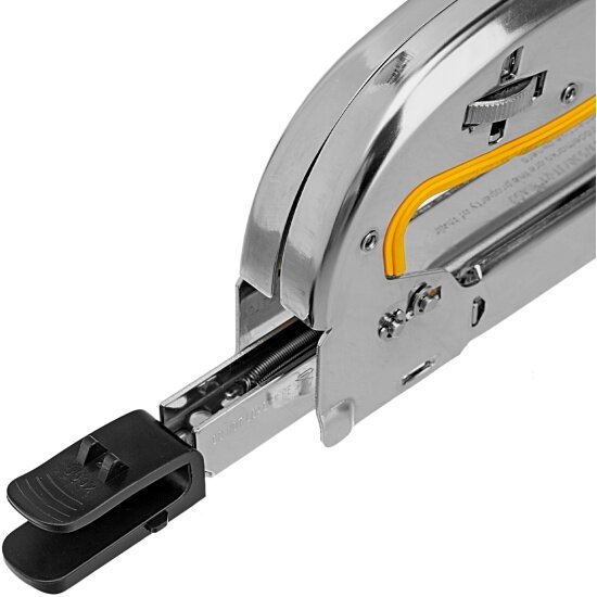 Металлический корпус степлера обеспечивает повышенную прочность по сравнению с пластиковыми аналогами. В ходе тестов на износ инструмент выдержал более 50,000 циклов забивания без деформации корпуса, что подтверждено испытаниями в лаборатории инструментального завода Villehardouin (Франция).