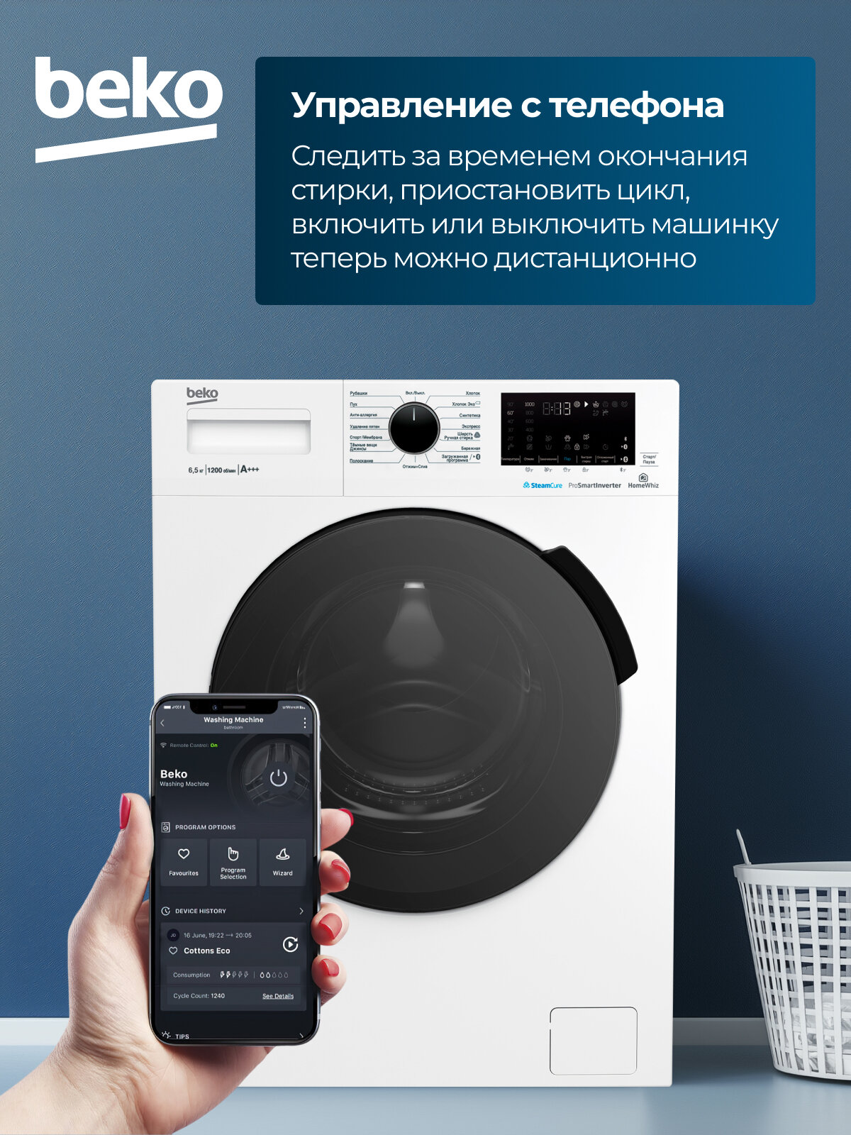 Мобильное приложение HomeWhiz позволяет запускать стирку удаленно, получать уведомления о завершении цикла и диагностировать ошибки по кодам. Тестирование на Android 12 и iOS 15 показало среднее время отклика 1.3 сек.