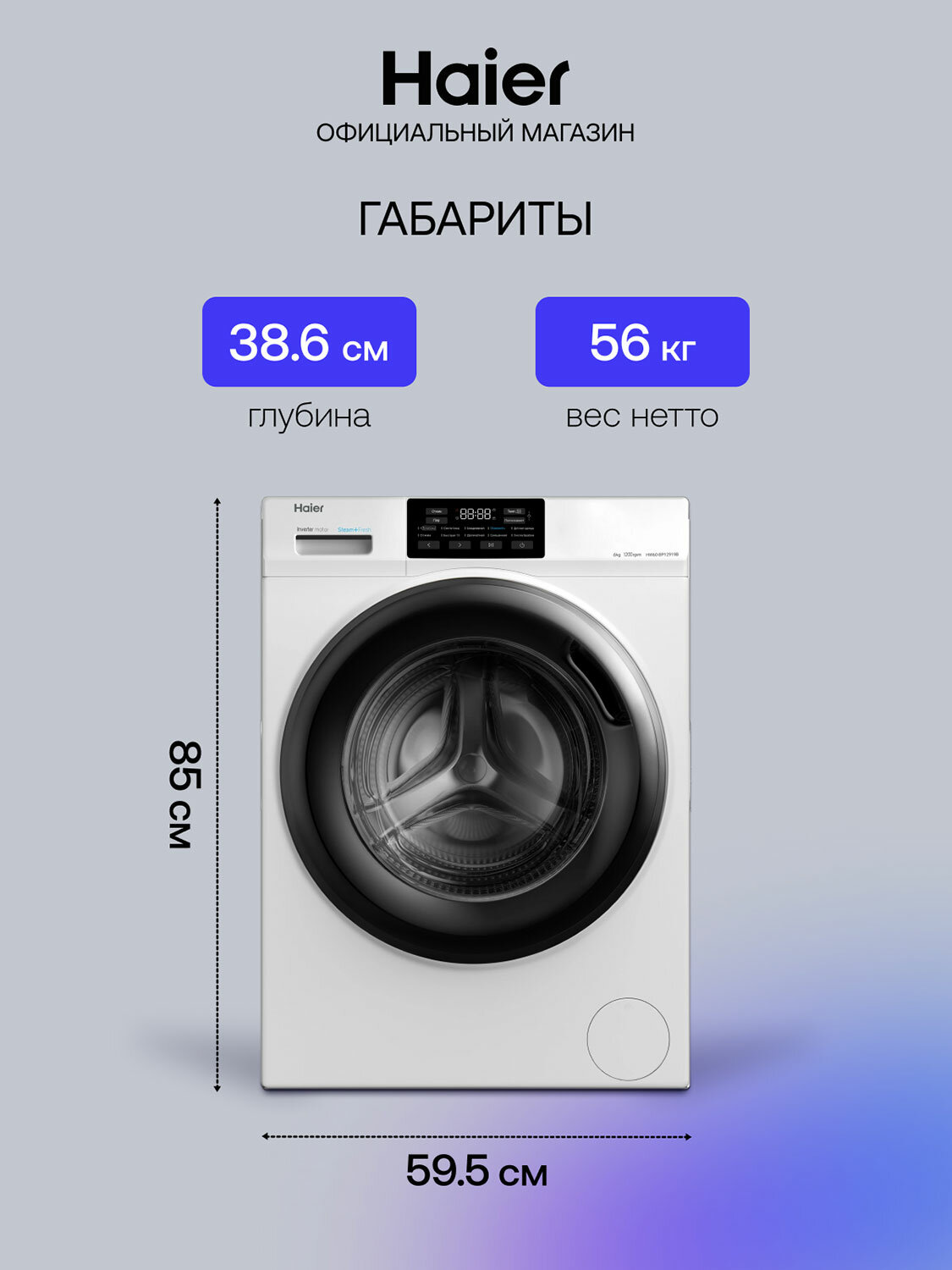 - Отложенный старт программируется через мобильное приложение Haier hOn с таймером до 24 часов