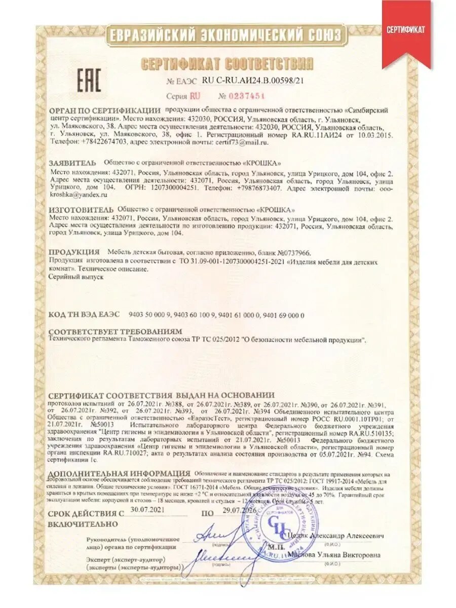 Экспертиза Международного института экологии мебели подтвердила соответствие: