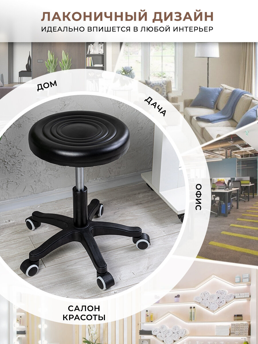 - 5 двойных колесиков с полиуретановыми накладками: обеспечивают плавное передвижение по ламинату, плитке и ковролину среднего ворса без царапин.