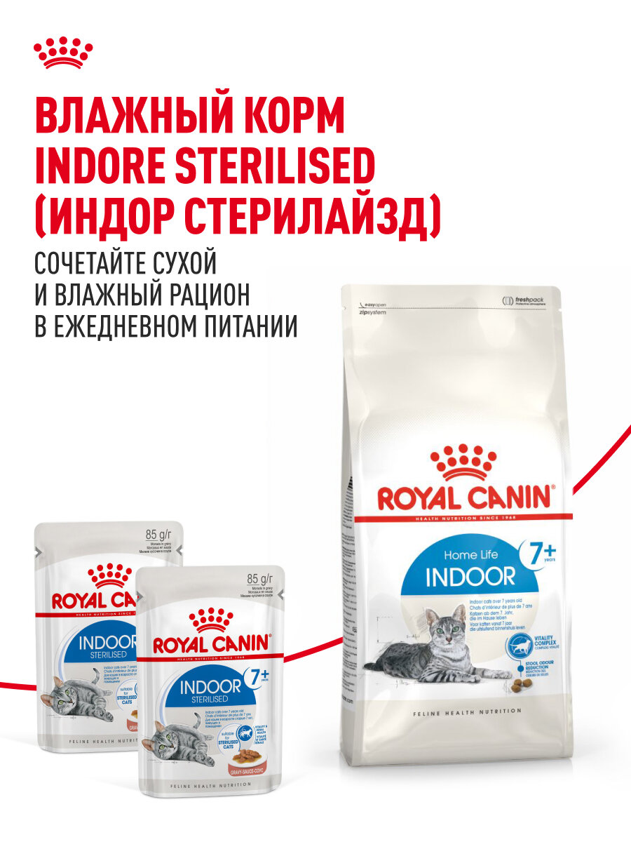 - Увеличивайте порцию Royal Canin Indoor 7+ до 100% к 7 дню