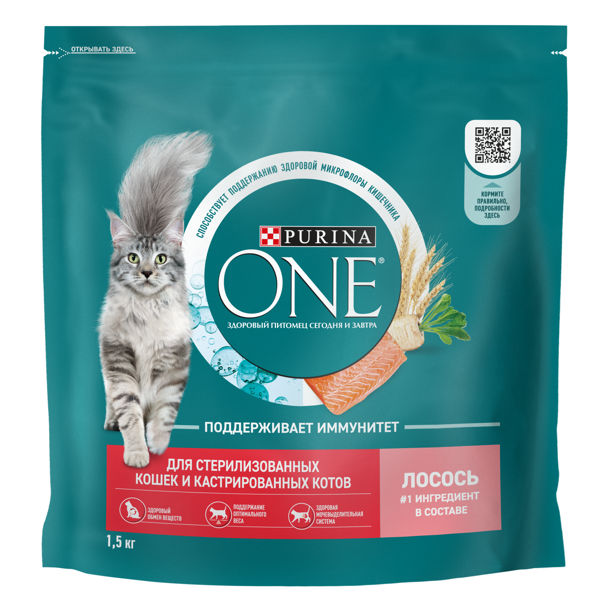 Корм PURINA ONE® Sterilised с лососем разработан для удовлетворения особых потребностей после стерилизации: