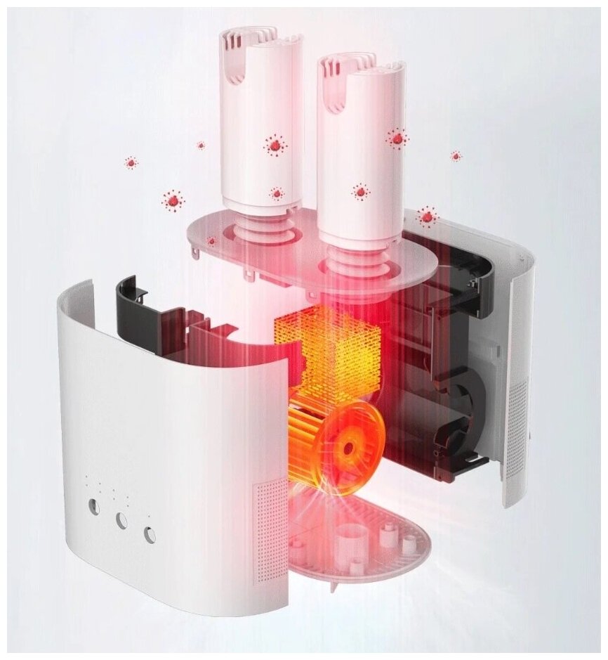 Бактерицидное действие достигается за счет ультрафиолетового излучения, уничтожающего 99,7% микроорганизмов (данные лабораторных тестов CNAS). Принцип работы: