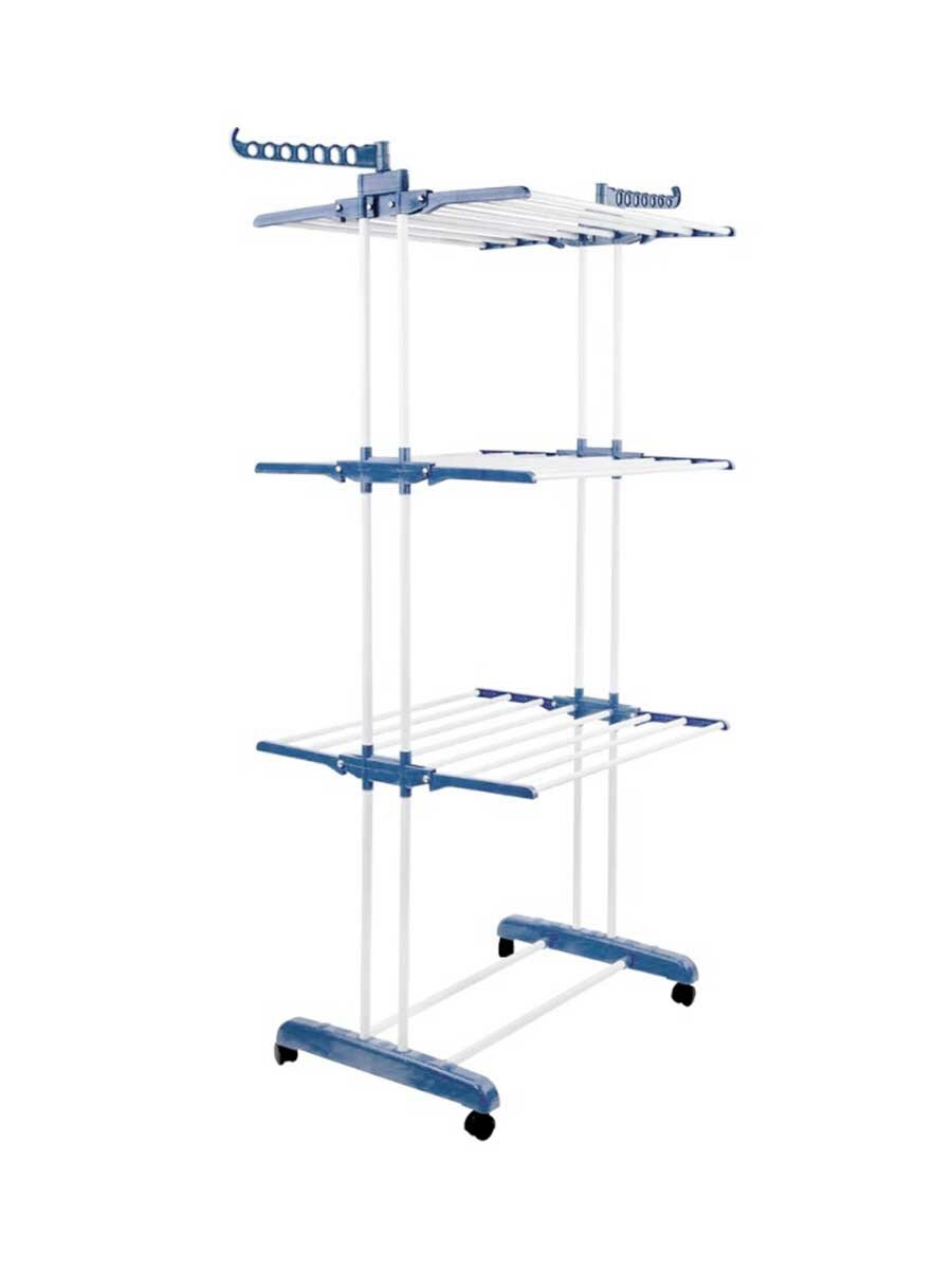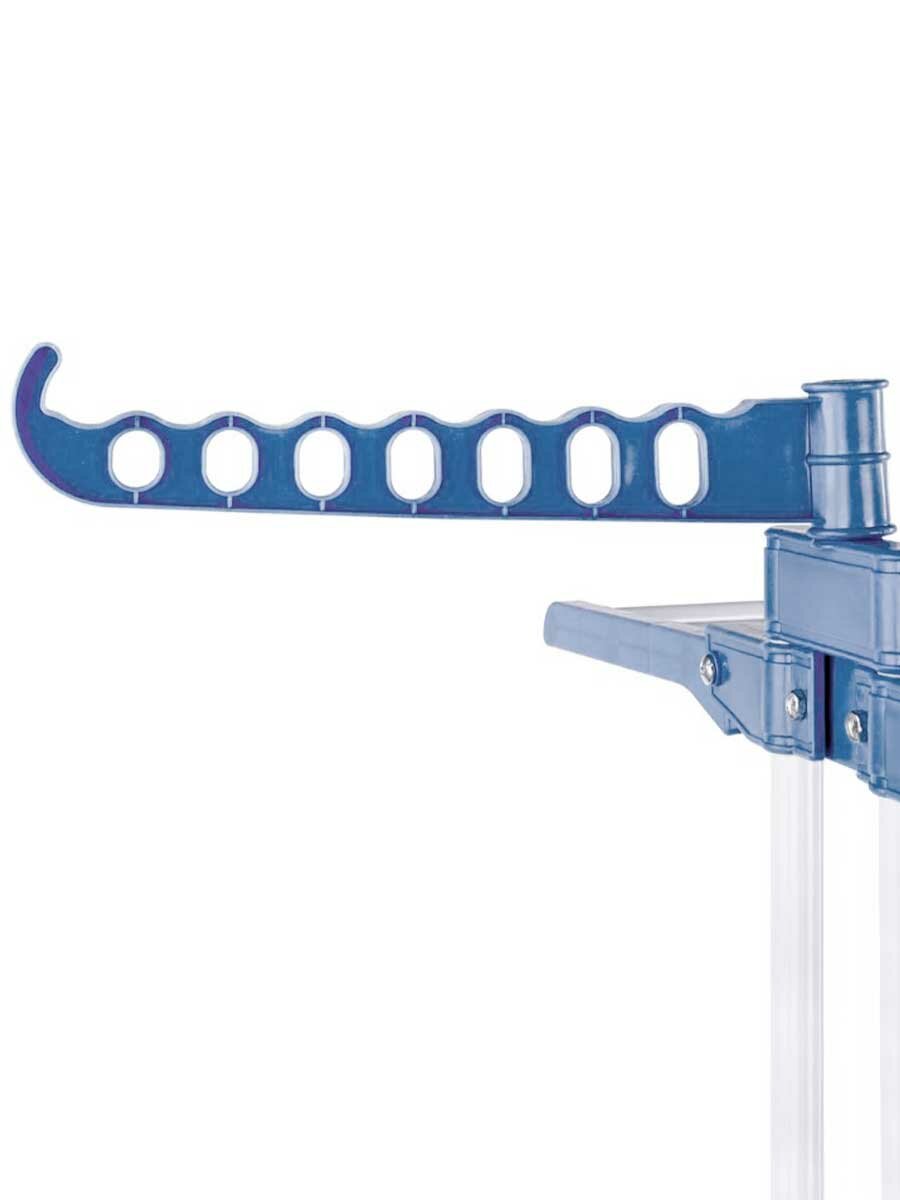 Металлическая конструкция обеспечивает нагрузку до 20 кг, что решает проблему сушки объемных вещей: одеял, пуховиков, штор. Дополнительную стабильность создают 4 поворотных колеса с фиксаторами.