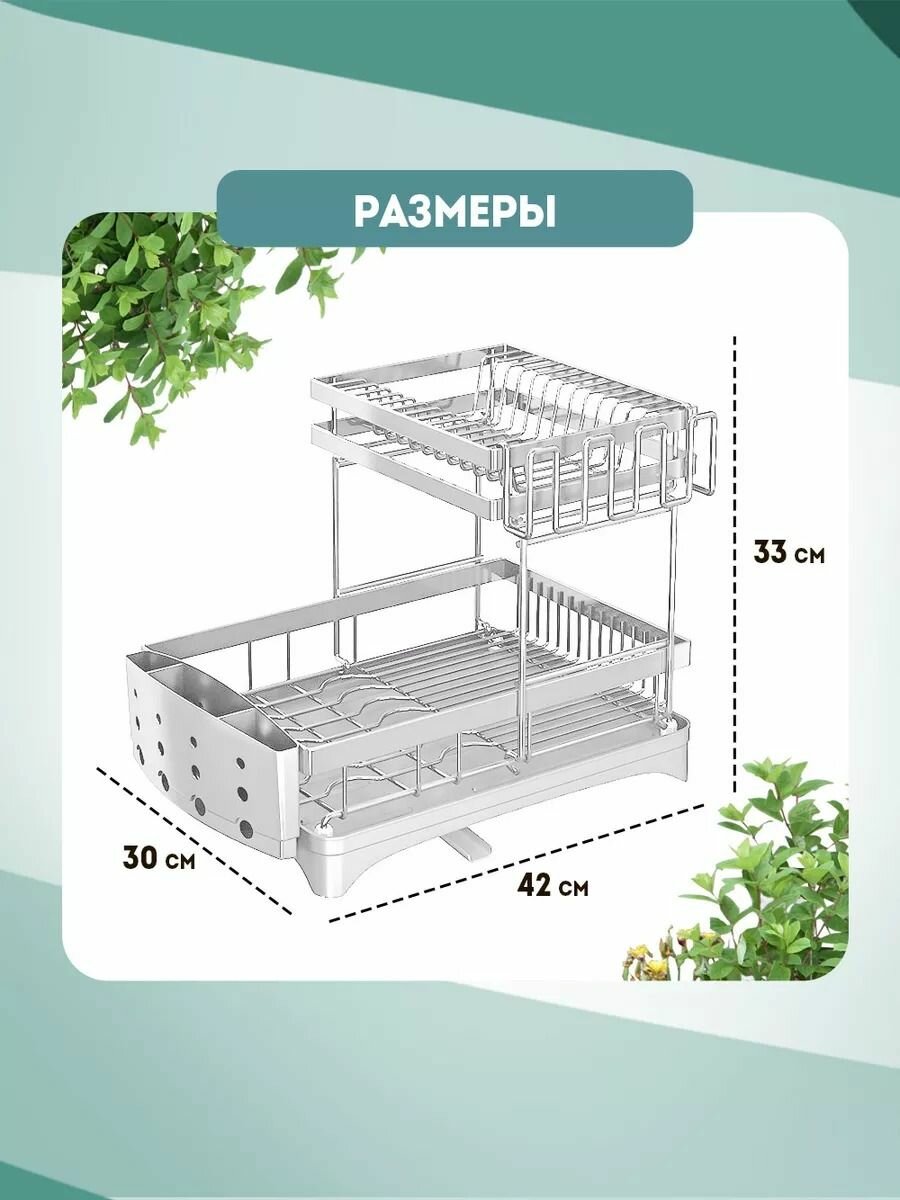 Модель сочетает металлические стойки с пластиковым поддоном, обеспечивая оптимальное распределение нагрузки до 5 кг. Размеры 40×50 см позволяют разместить конструкцию на стандартной столешнице возле мойки. Особенности исполнения: