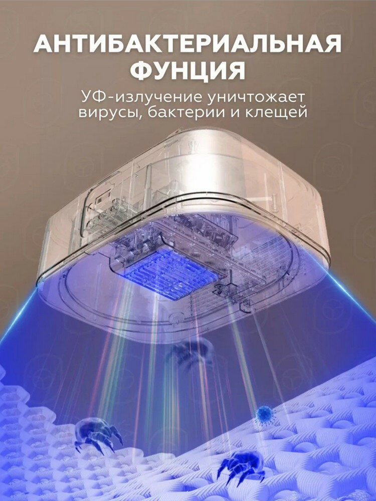 Встроенная антибактериальная система с УФ-лампами мощностью 36 Вт полностью обеззараживает бельё за 30 минут работы. Лабораторные испытания подтверждают: