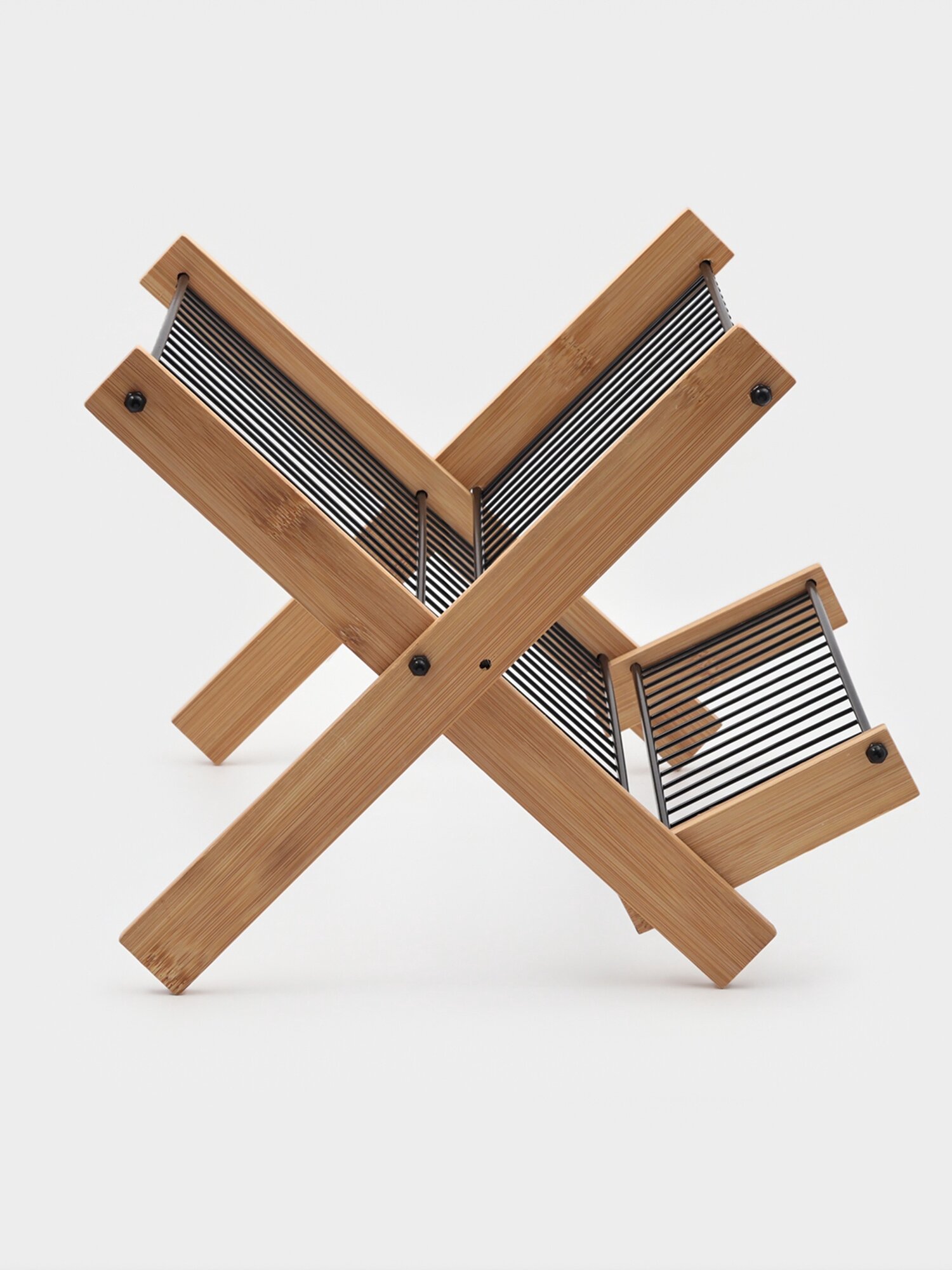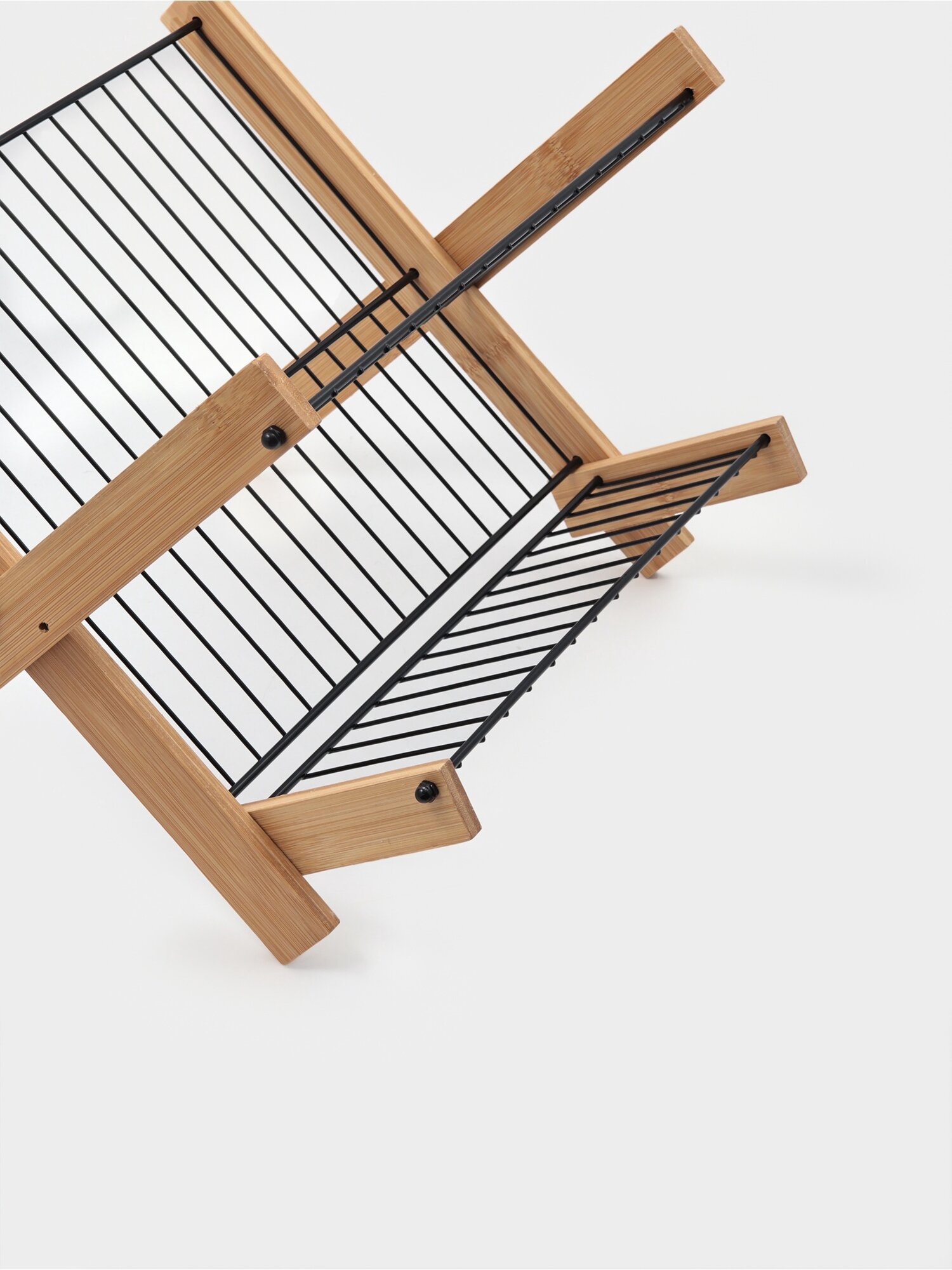 Металлические компоненты сушилки допускают мойку в посудомоечной машине при температуре до 70°C. Бамбуковые элементы требуют ручной очистки с защитными составами.