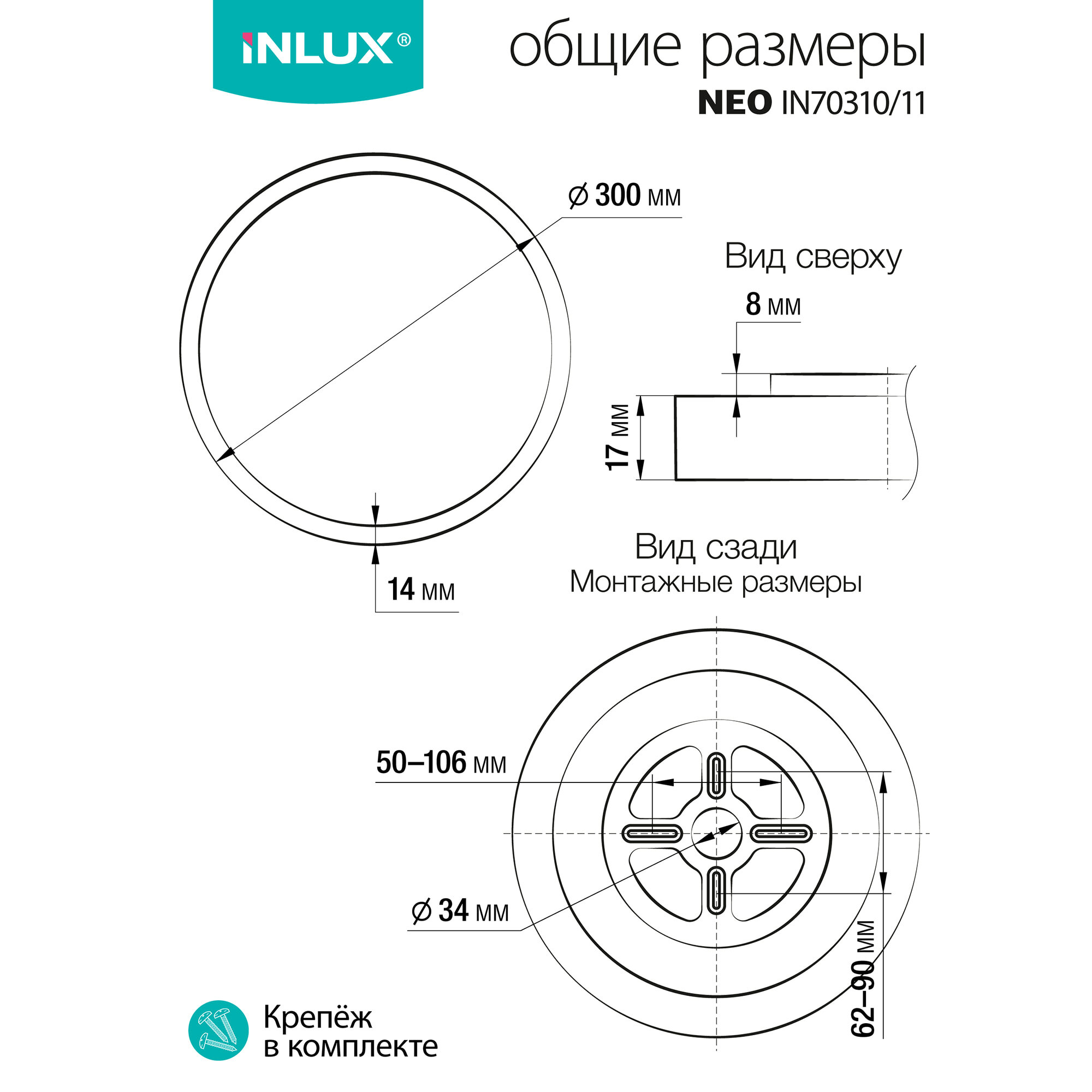 Модель IN70311 из линейки Neo Technology Collection сочетает круговую LED-подсветку с основным световым потоком 1600 люмен. Толщина металлического корпуса 2.5 мм обеспечивает защиту от деформации при монтаже: