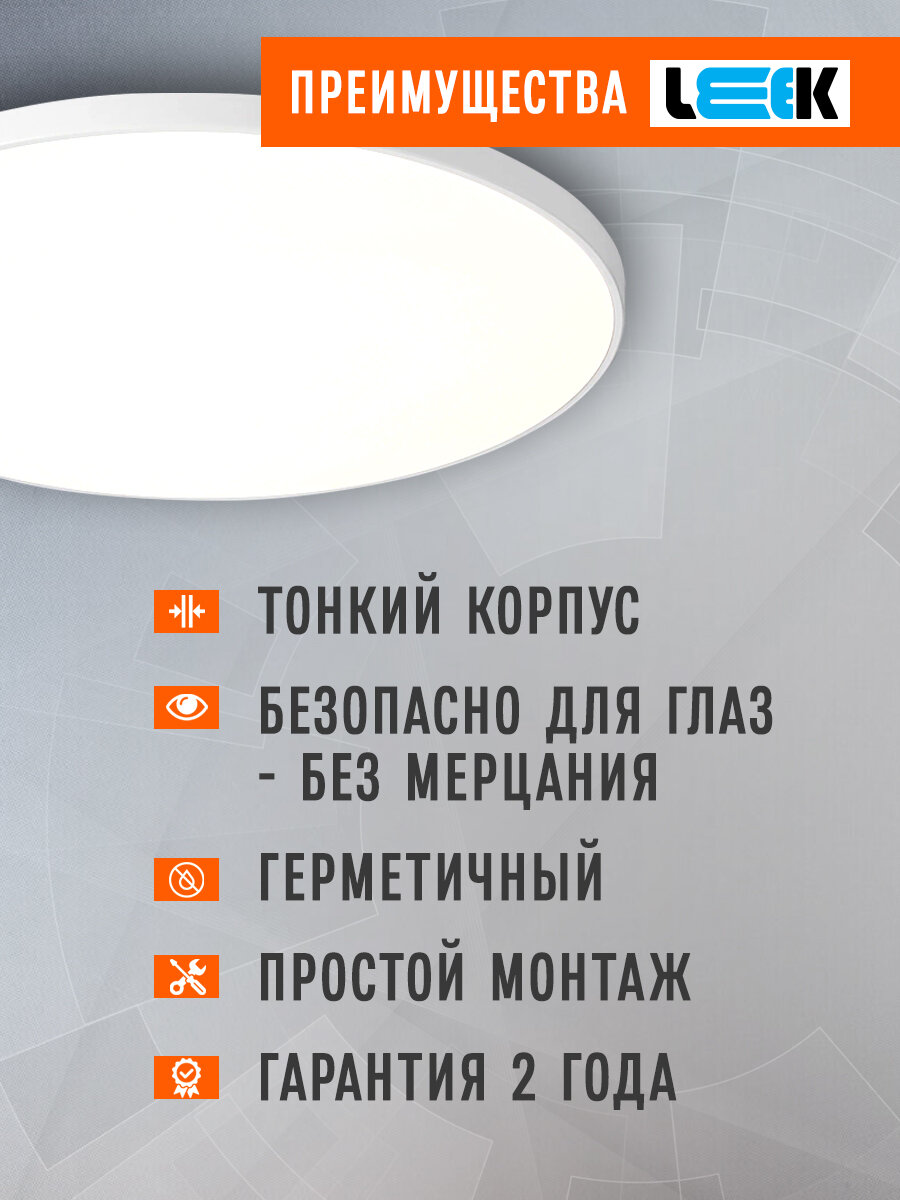 Влагозащищенный светодиодный потолочный светильник 24Вт для ванной и кухни: обзор модели IP65