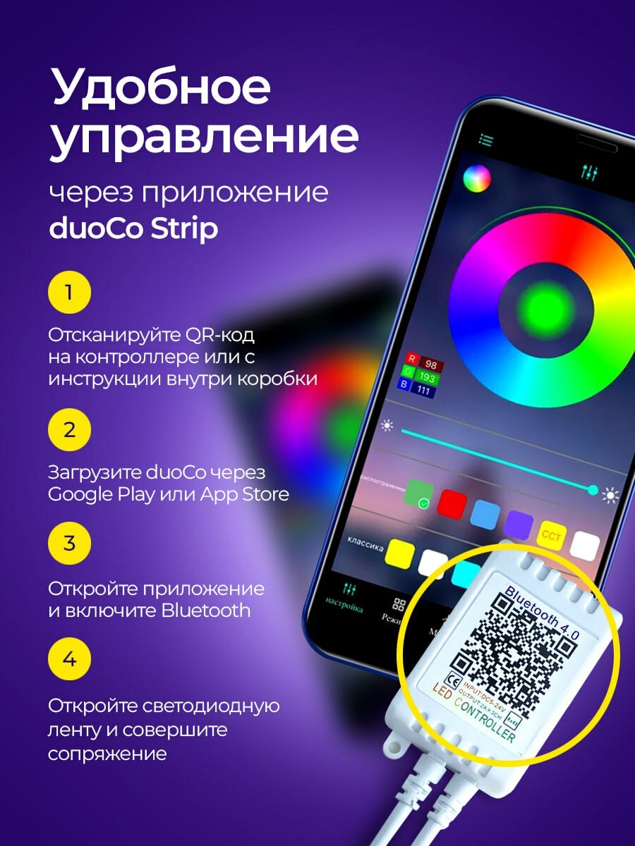 - Режимы работы: 20 статических цветов + динамические эффекты