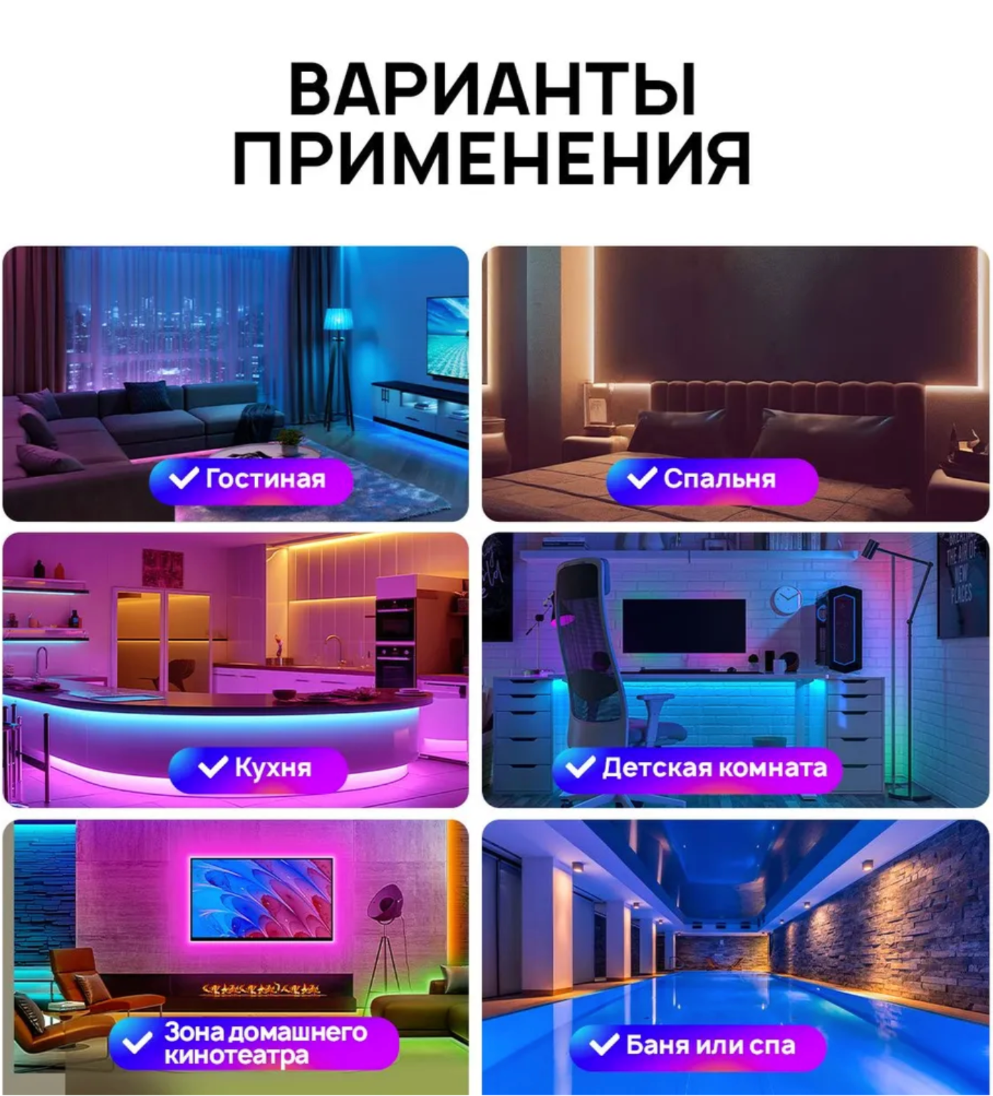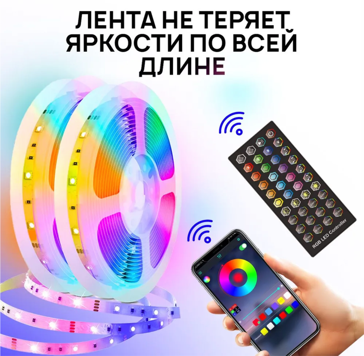 Музыкальная синхронизация работает через встроенный микрофон с регулируемой чувствительностью. Лента анализирует частоты от 50 Гц до 10 кГц, выделяя басы и вокал для создания тематических световых эффектов: