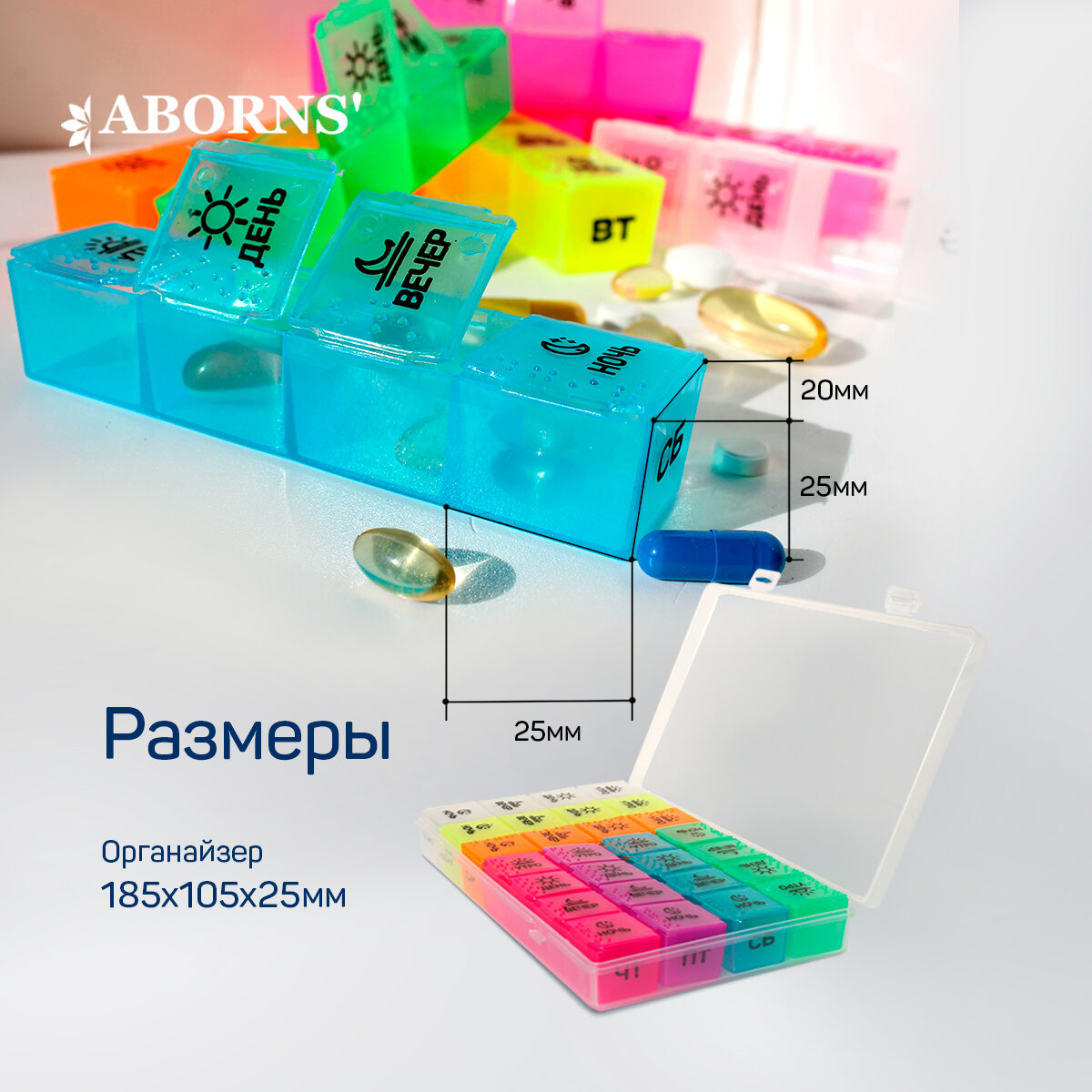 - 28 стандартизированных ячеек: Вмещает таблетки диаметром до 15мм и капсулы длиной 22мм