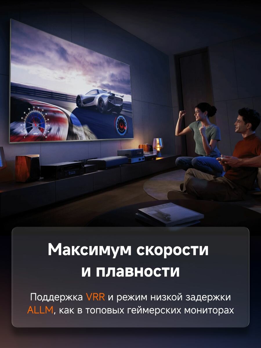 100-дюймовый формат L100MA-MAXRU создан больше для впечатлений, чем для модных чек-листов. Эта панель фокусируется на ключевых параметрах: контрастность QLED в IPS DNS Fine Contrast, предсказуемая работа Android TV 12 и продуманная интеграция с техникой Xiaomi. По цене 399 000 рублей в рознице модель конкурирует с Samsung QN100C через акцент на базовые потребности: чёткая цветопередача, читаемый интерфейс из 4 метра, упрощённое управление сабвуферами по Bluetooth 5.2.
