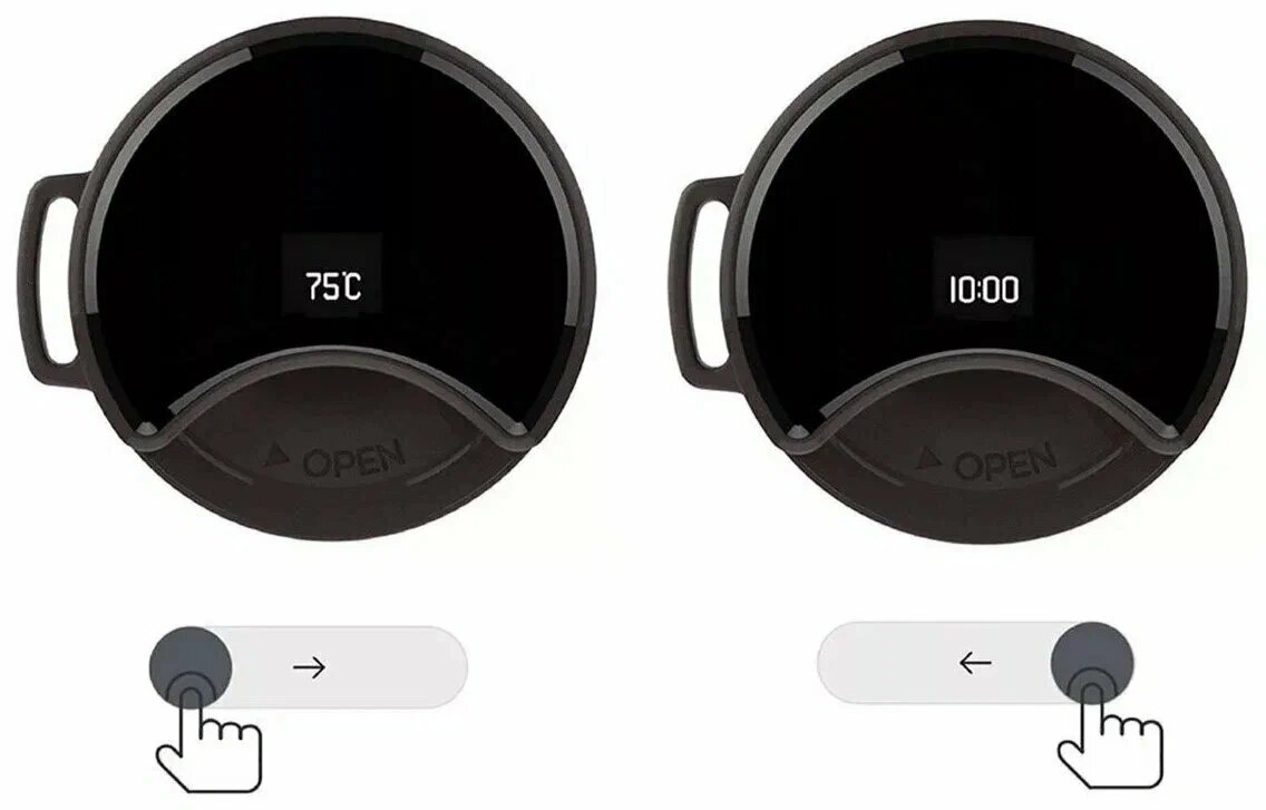 OLED-дисплей контролирует температуру жидкости с точностью ±2°C благодаря датчику NTCCumitec из Японии. Экран автоматически активируется при открывании клапана или постукивании по корпусу - эта функция отключается через 5 минут бездействия для экономии заряда.