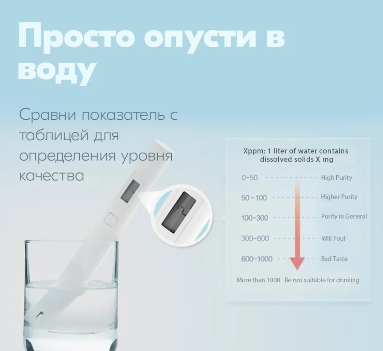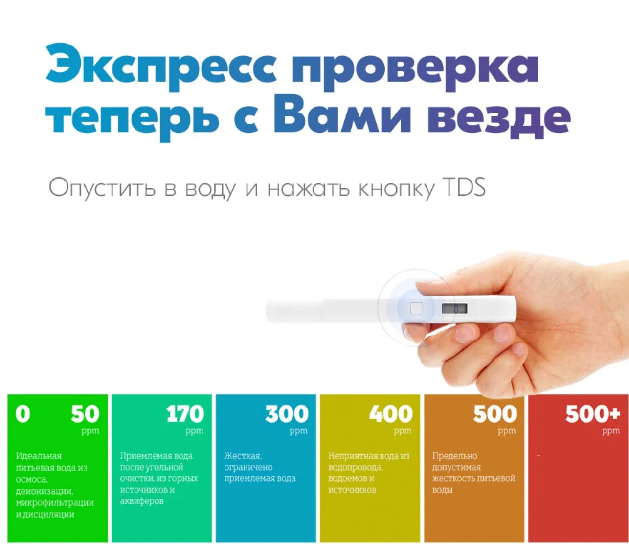 Анализатор Xiaomi TDS решает три основные задачи: