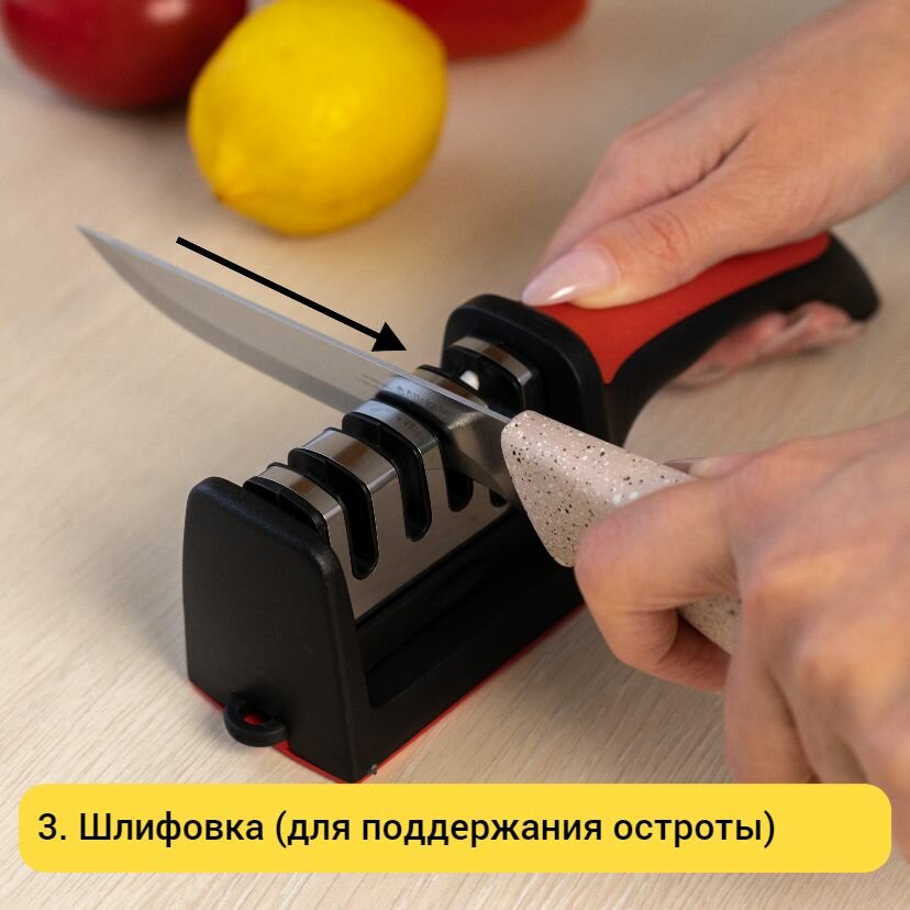 Универсальная точилка для ножей и ножниц с керамическими и стальными абразивами