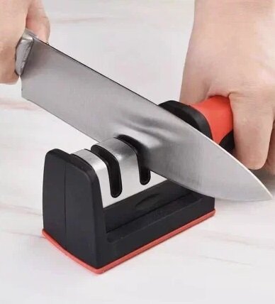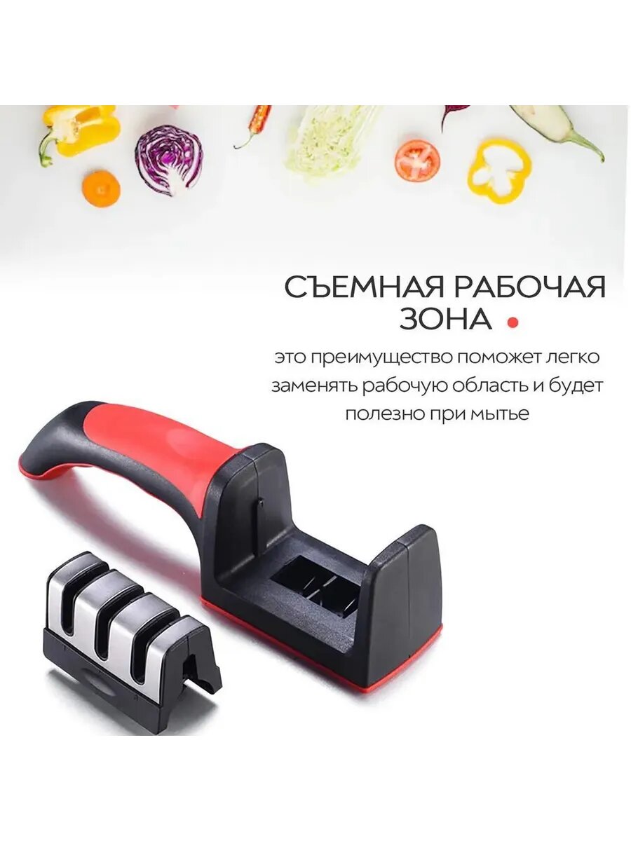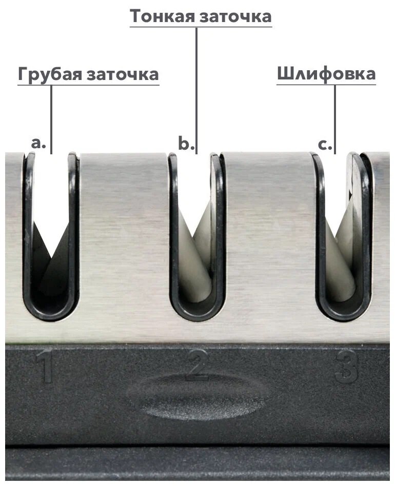 - Серрейторные ножи: V-образная канавка на стальном модуле обрабатывает зубчатые кромки за 8-10 проходов