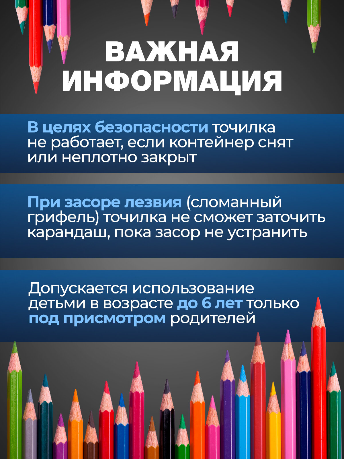 | Скорость заточки | 1 карандаш за 6 секунд |