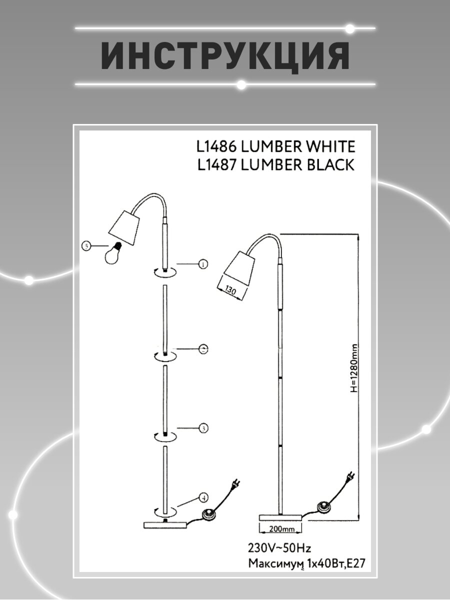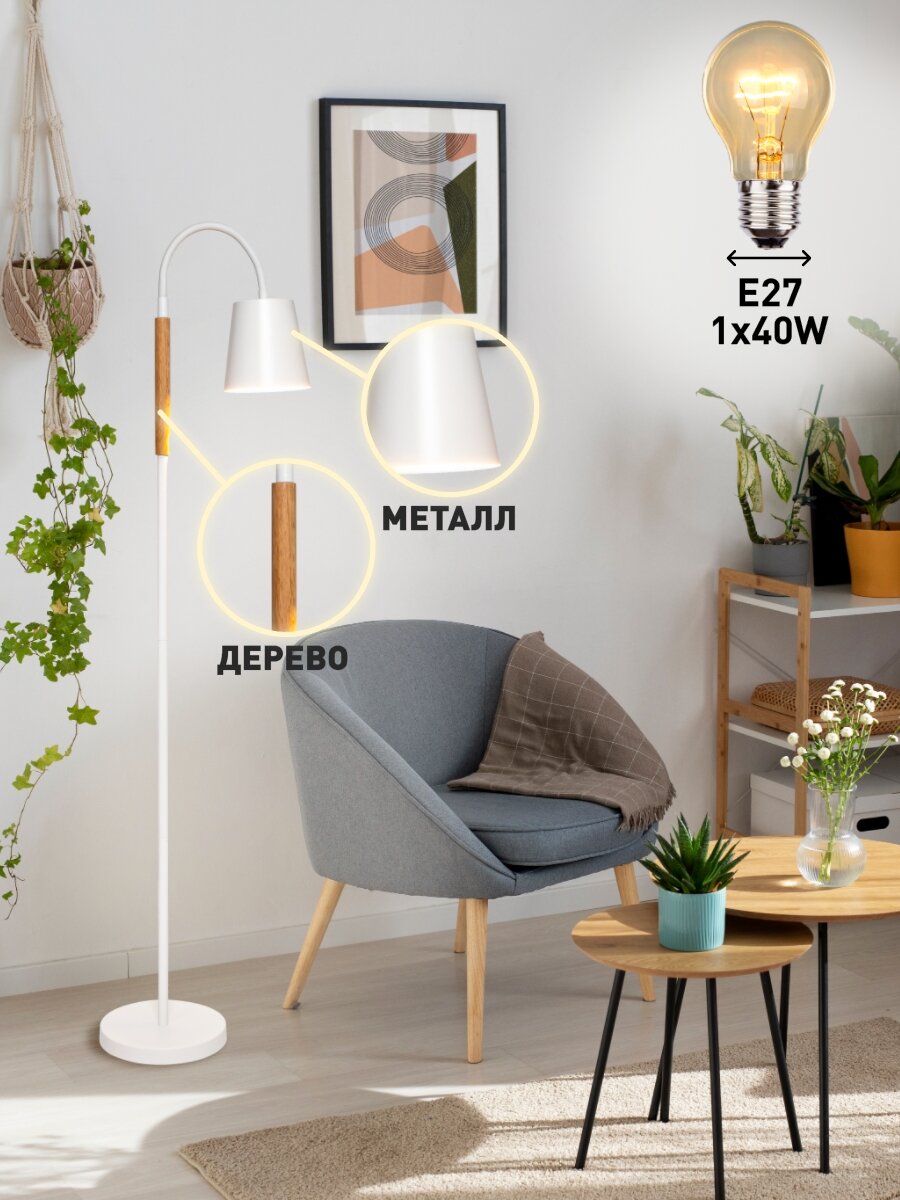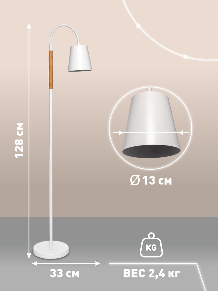 Торшер Lamplandia L1486 LUMBER WHITE с цоколем E27 поддерживает до 40Вт мощности — оптимально для светодиодных и энергосберегающих ламп. 3 фиксированных положения плафона обеспечивают 60° диапазон наклона. Технические нормы: