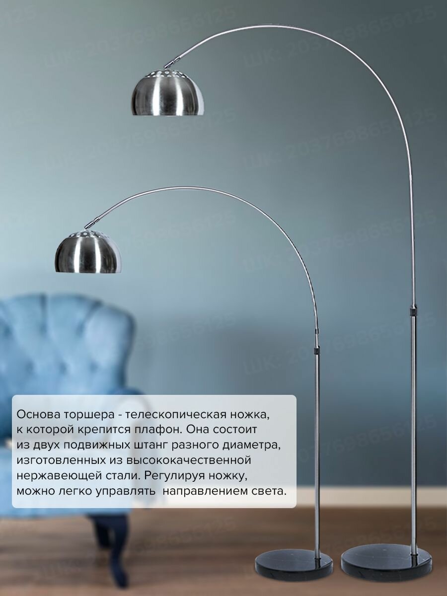 Регулируемый механизм позволяет менять высоту светильника от 120 до 145 см с фиксацией в 5 положениях. Угол наклона абажура регулируется в диапазоне 30-80 градусов для точечного освещения книги без бликов.