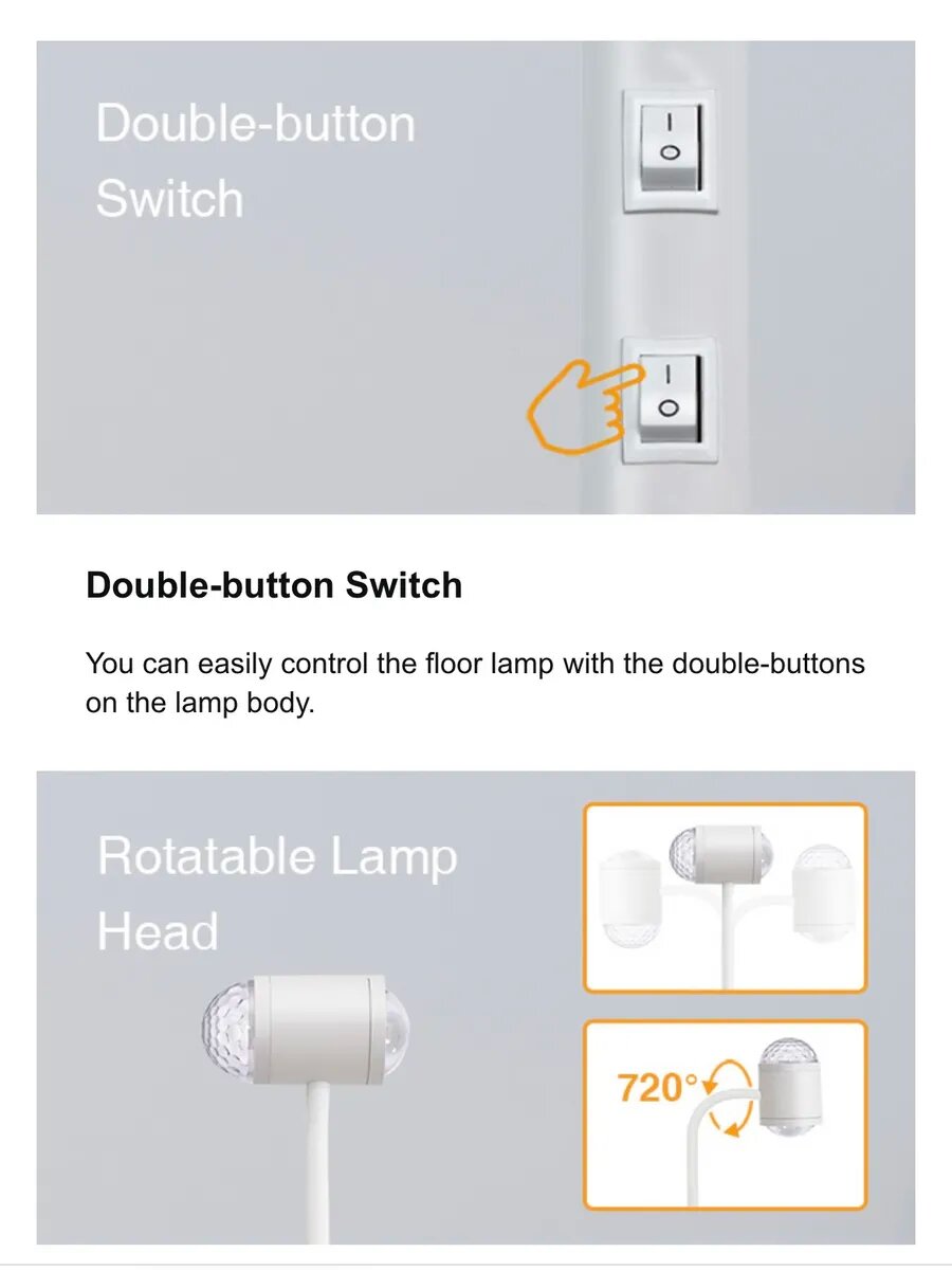 Двусторонний напольный торшер с регулируемой высотой и дистанционным управлением