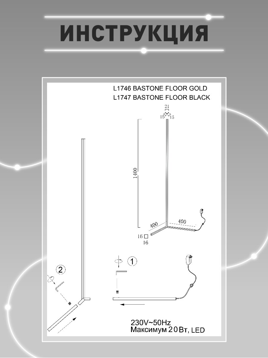 Сборка напольного светильника выполняется за 3 этапа: