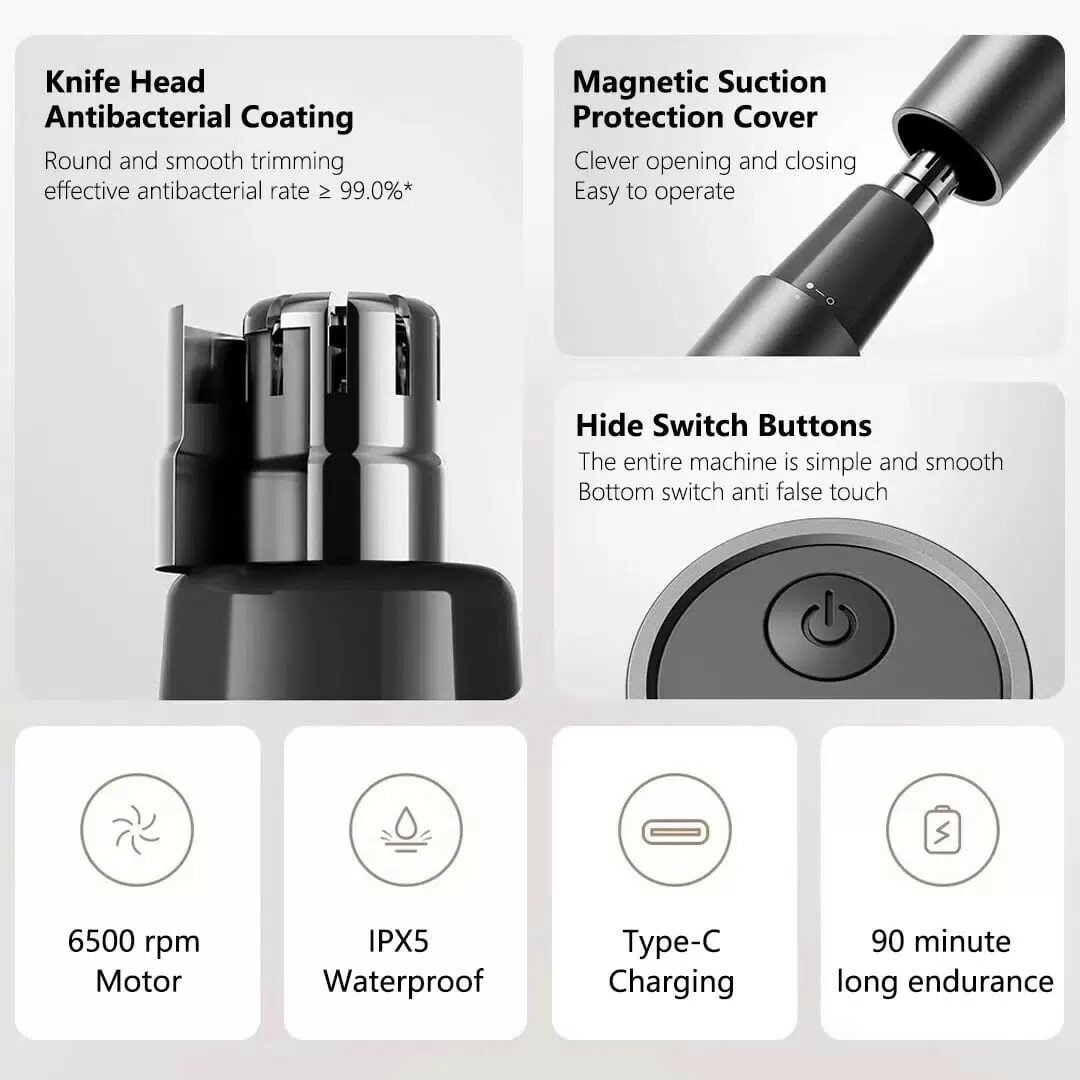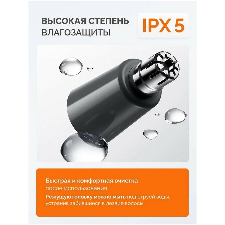 4-в-1 функционал - прибор обрабатывает волосы в носу, ушах, подравнивает усы и бороду. Проворачивающаяся головка адаптируется к изгибам лица, предотвращая порезы.