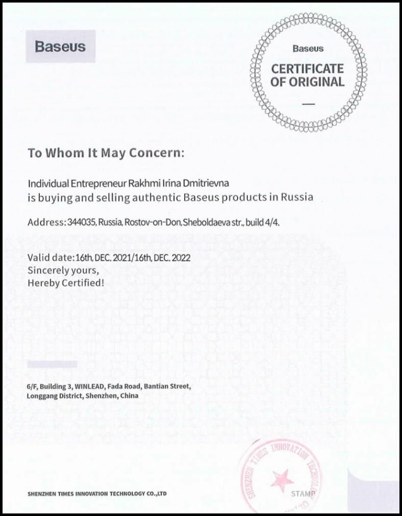 - При покупке с другими гаджетами Baseus – скидка 15% по программе Bundle Discount